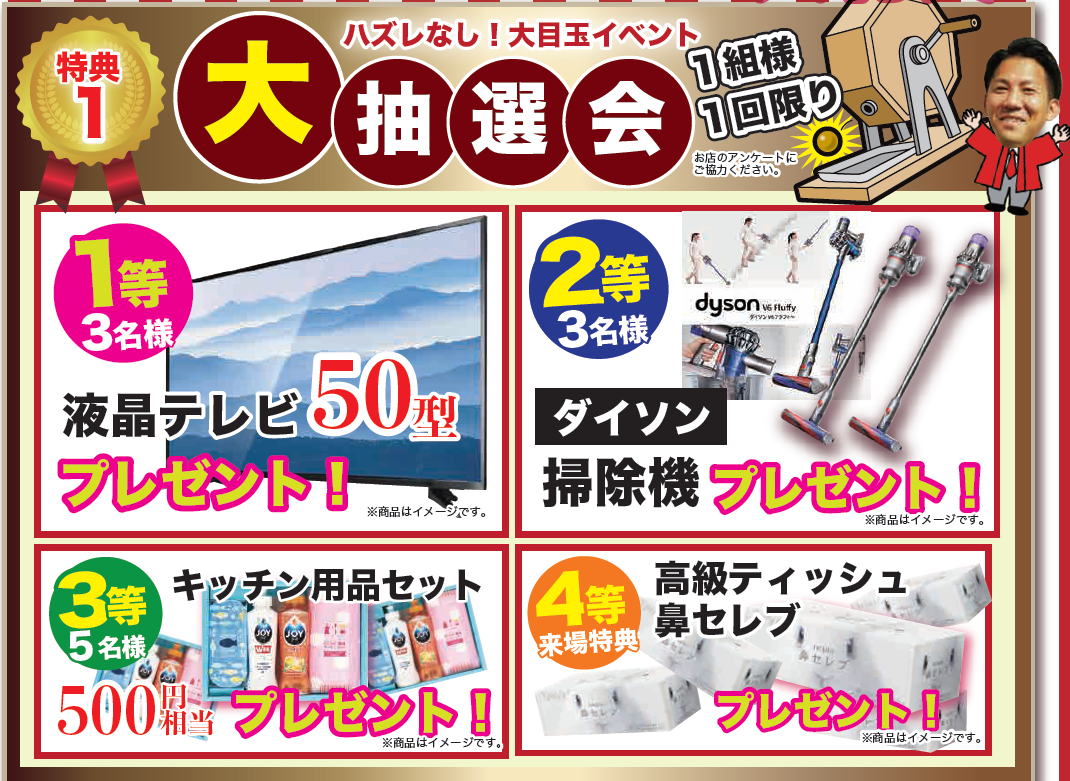 特典1:はずれなし!豪華景品が当たる大抽選会