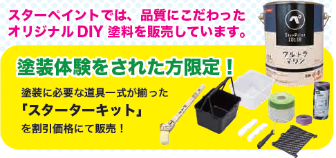 塗装に必要な道具一式が揃ったスターターキットを特別割引価格にて販売いたします。