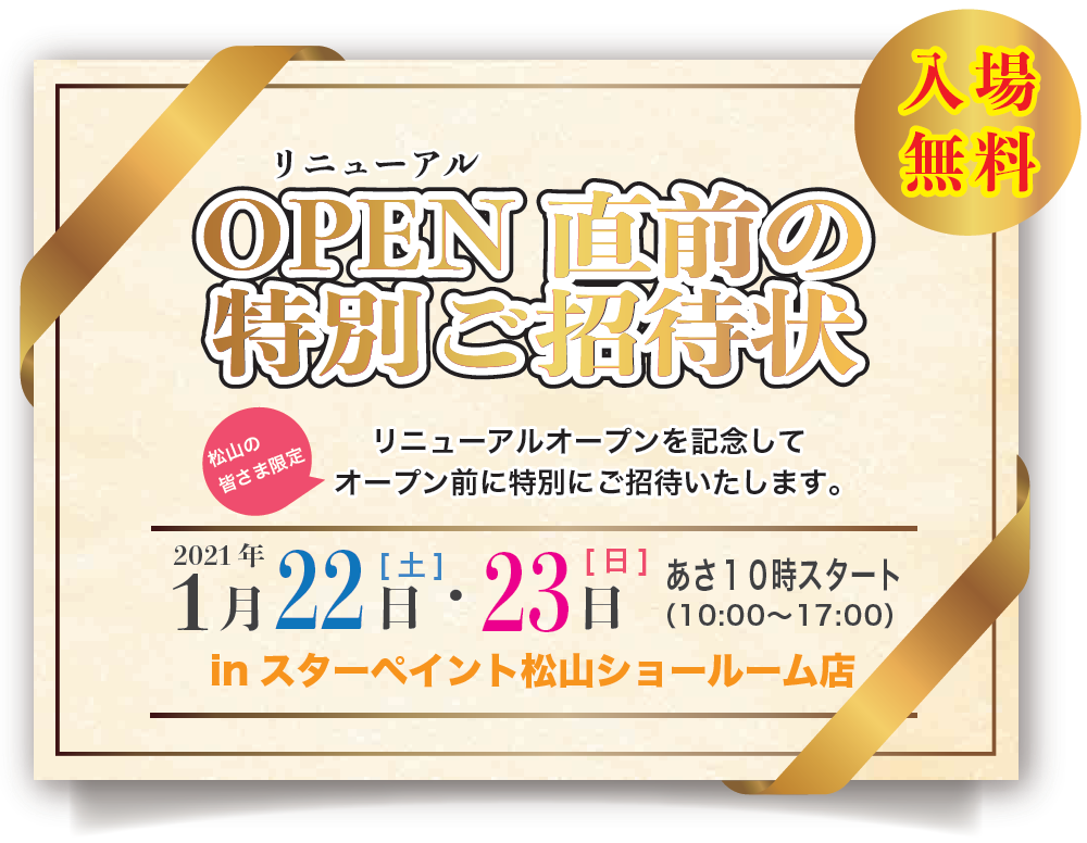 松山ショールーム店 リニューアルオープン前の特別ご招待会のお知らせ