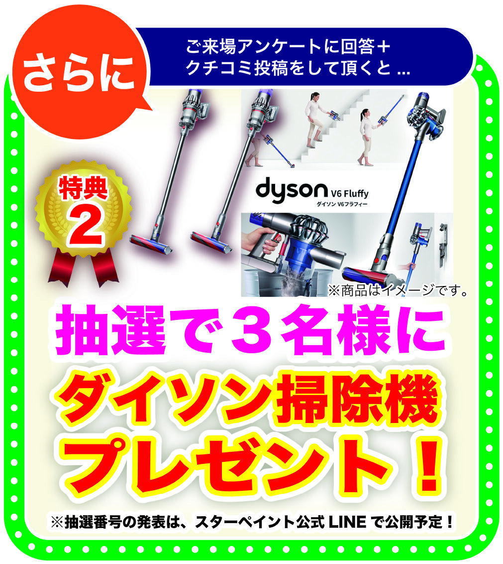抽選番号をお渡しし、スターペイントの公式LINEで当選番号の発表をさせていただきます。