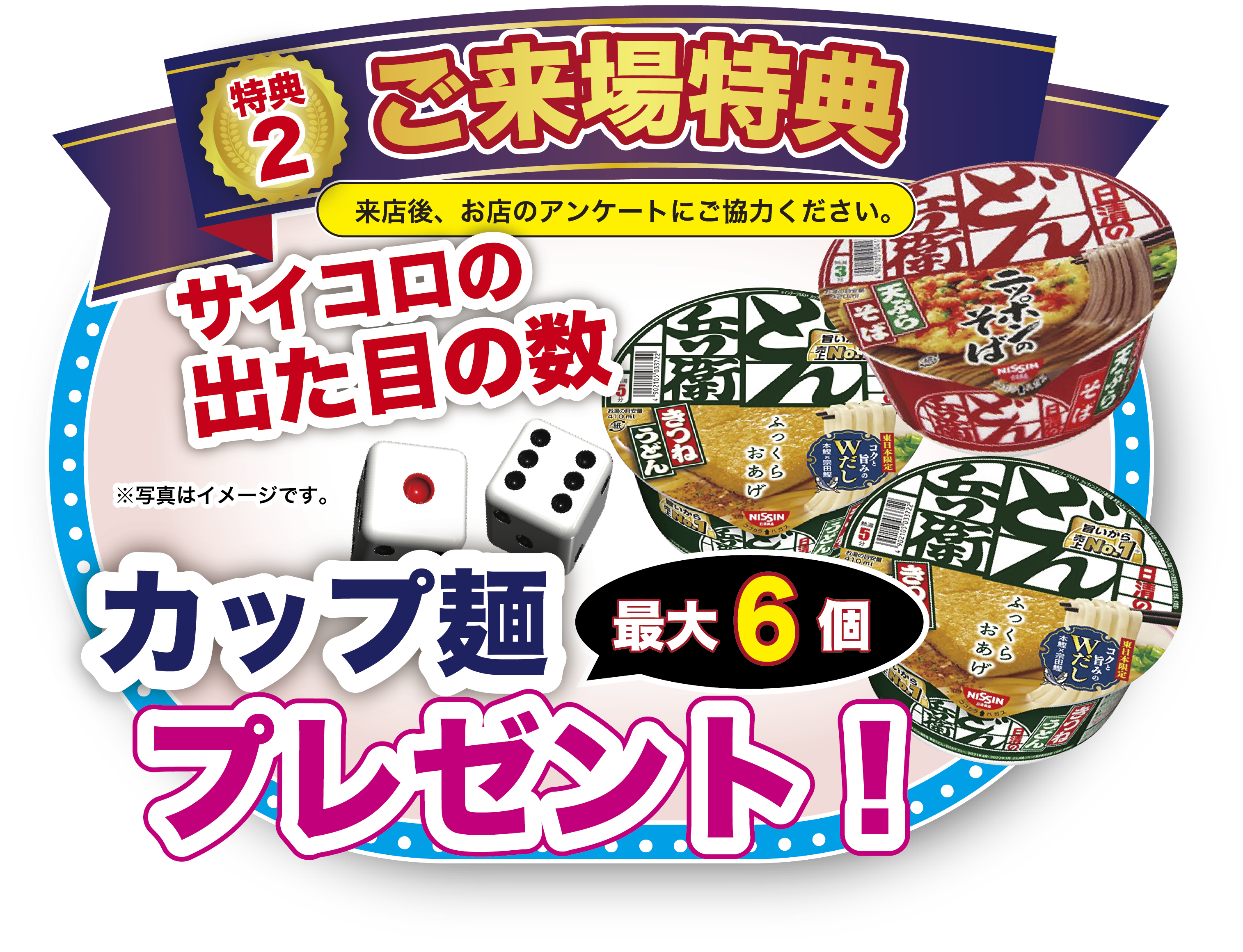 ✨サイコロの出た目の数カップ麺をプレゼント✨