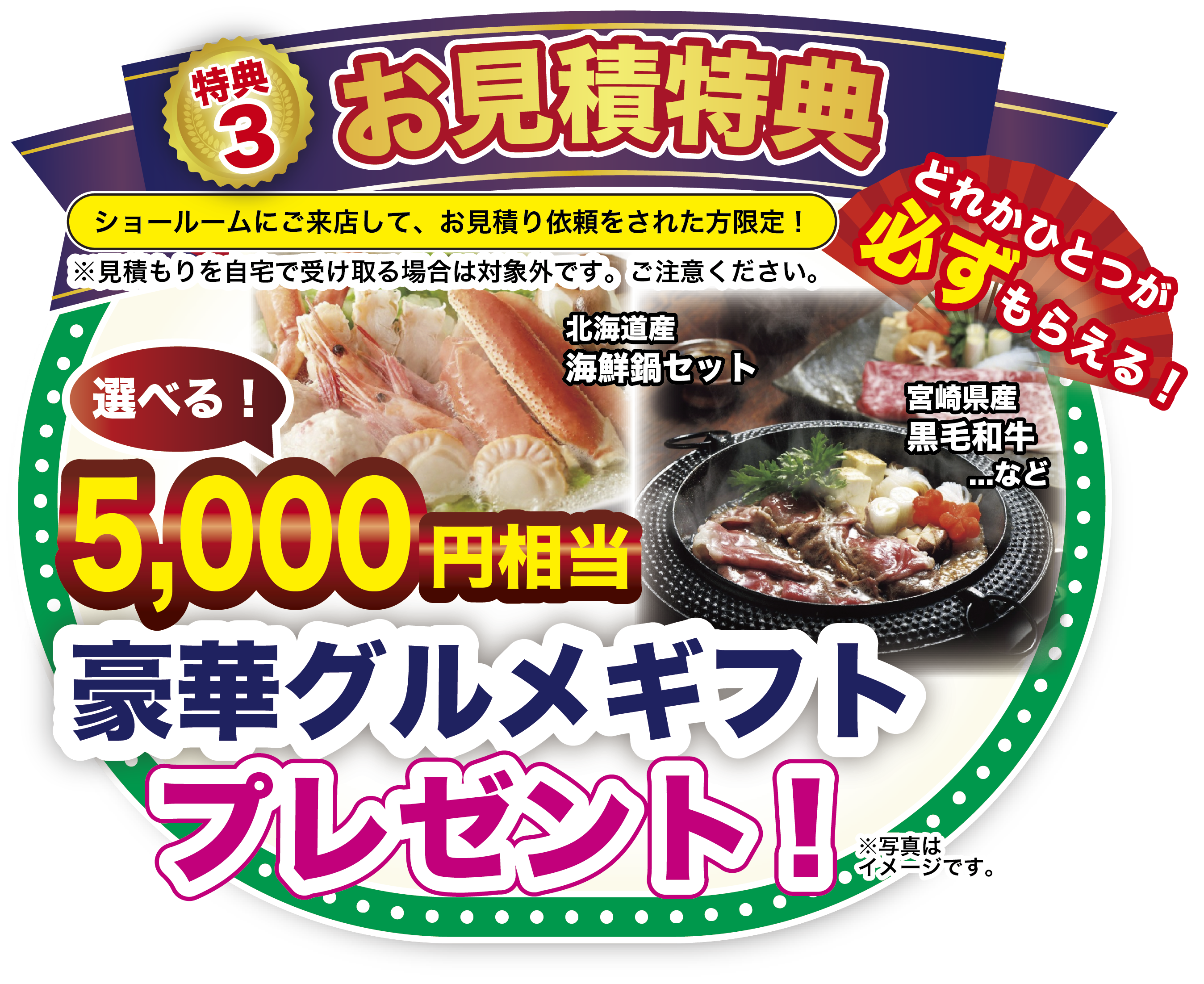 ※ショールームにご来場された方のみ対象。お見積りを自宅で受け取る場合は対象となりませんのでご注意ください。