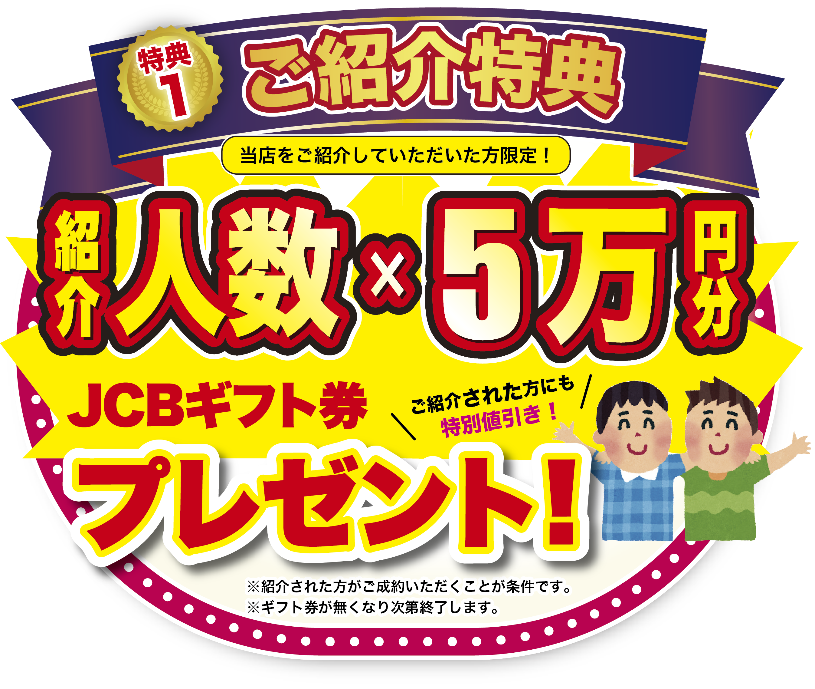 紹介人数 × 50,000円分のJCBギフト券 プレゼント!!!