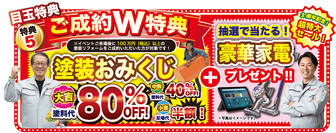 イベント期間中にご来場後、100万円(税込)以上の塗装リフォームをご成約いただいた方限定