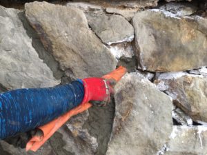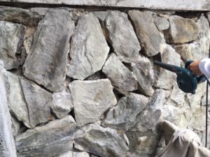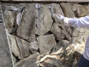 劣化が進んでいる石と石の隙間の繋ぎ目部分を撤去していきます。