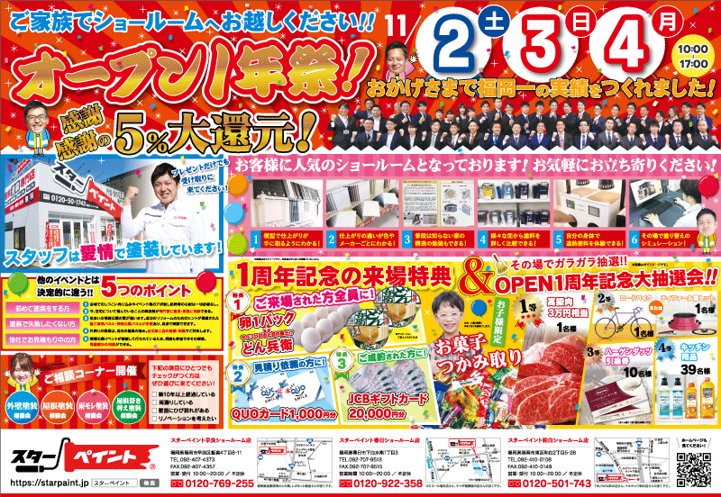 『オープン1年祭』開催のお知らせです! 外壁・屋根塗装 防水 専門店 スターペイント 20191031