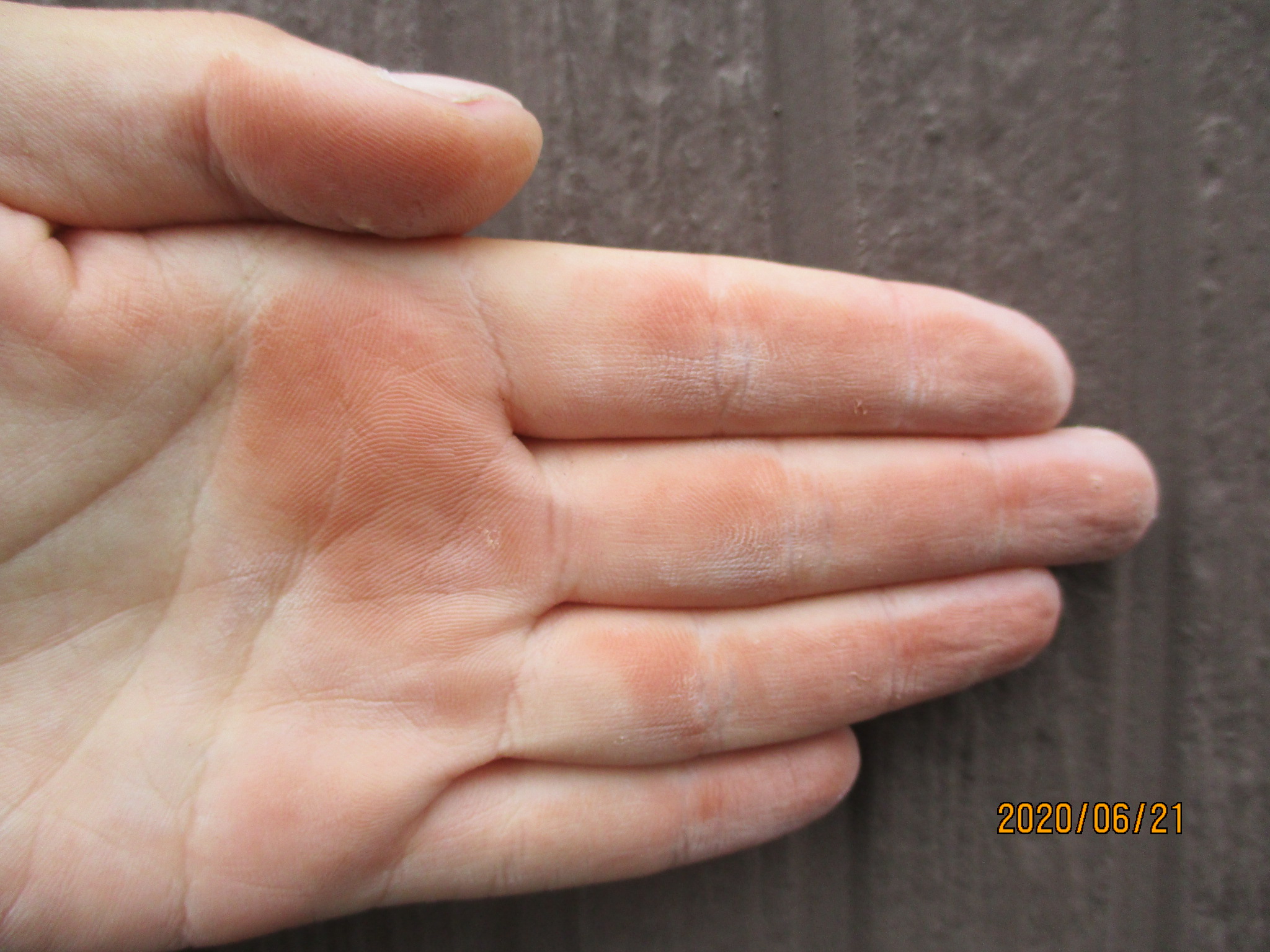 顔料自体は粉末状のものなので、手で触ると手に壁と同じ色の顔料が粉のように付着するのです。