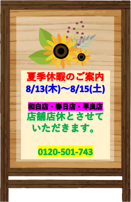 誠に恐れ入りますが、休業期間中のお問合せは8月16日より順次対応となります。