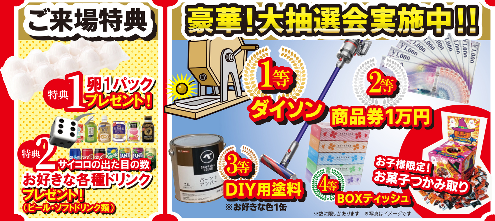 さらに!!ご来場の皆様へ、来場特典&大抽選会もご用意しております!!
