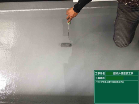 トップコートは基本的に2回の重ね塗りが行われます。塗りムラ、塗り残しのチェックを行い工事完了です。