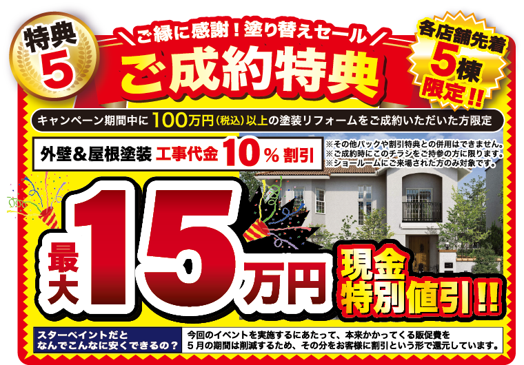 スターペイントでは、そんなお悩みを解決するために梅雨が始まる前のこの期間、「応援フェア」を開催いたします。