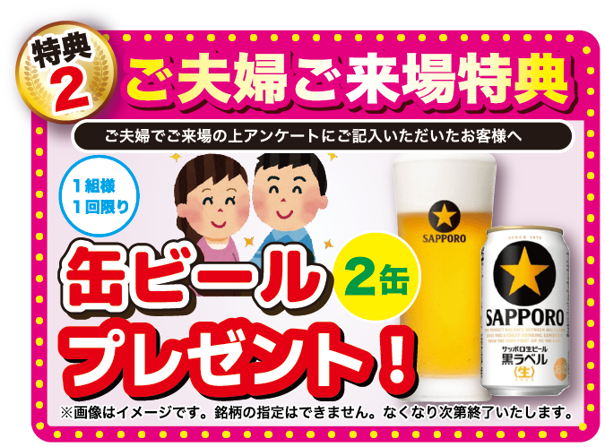 ご夫婦でご来場の上アンケートにご記入いただいたお客様に