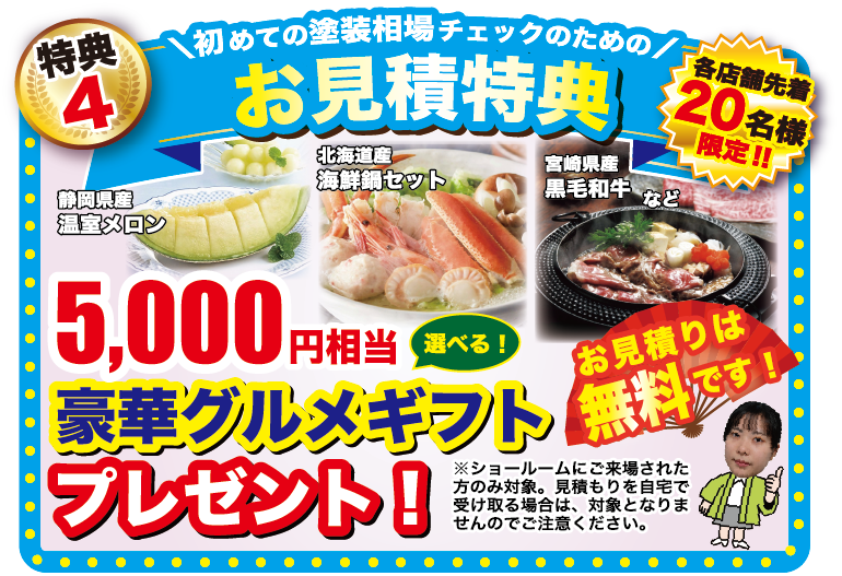 【※注意】ショールームにご来場された方のみ対象。お見積りを自宅で受け取る場合は対象となりませんのでご注意ください。