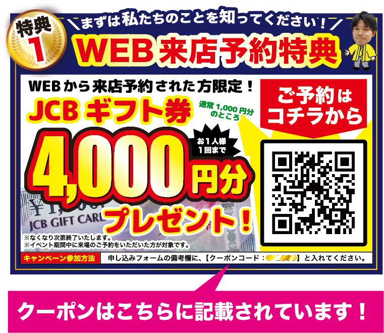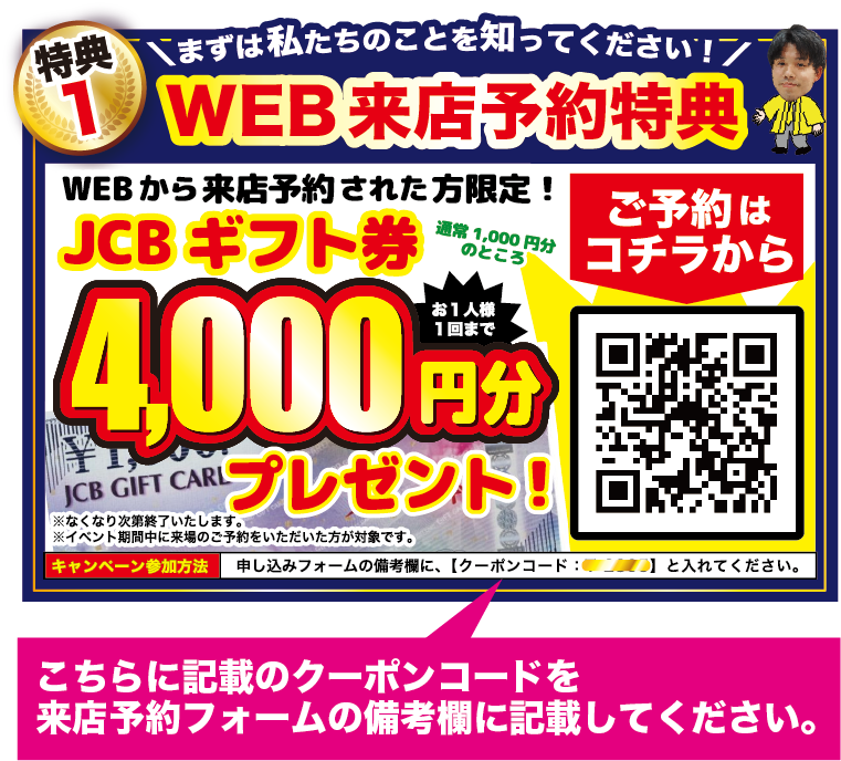 ※「チラシが届いていなかった」または「チラシを紛失してしまった」という方は、その旨備考欄に記載いただくか、お電話にてご連絡いただけると特典をお渡しさせて頂きますので、お気軽にご連絡ください!