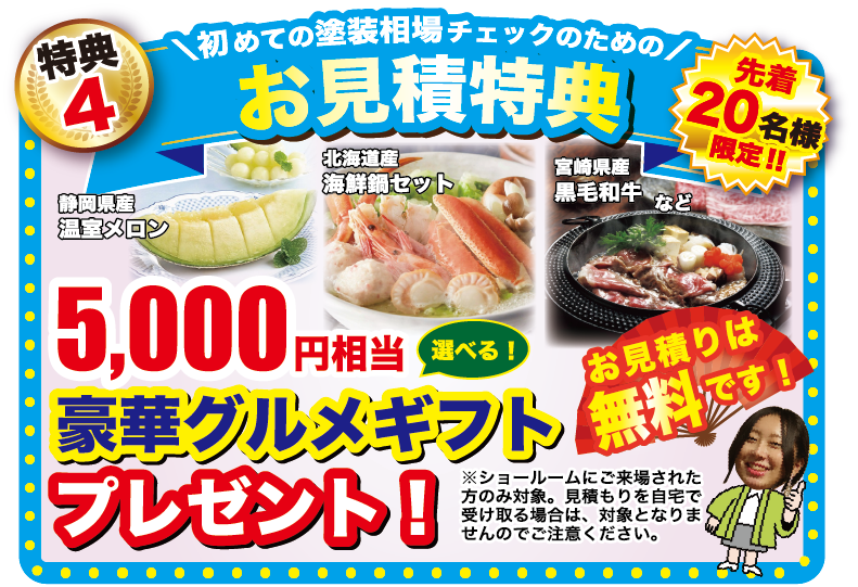 【※注意】ショールームにご来場された方のみ対象。お見積りを自宅で受け取る場合は対象となりませんのでご注意ください。