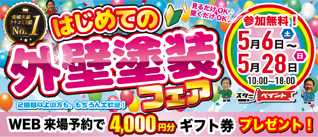 【はじめての?外壁塗装フェア】来店予約はこちらから!スターペイント松山ショールーム店