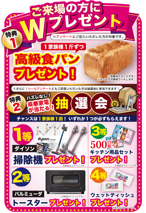 ご来場いただいた皆様には特別プレゼントや、豪華景品が当たる抽選会をご用意してお待ちしておりますので、ぜひお気軽にお越しください!