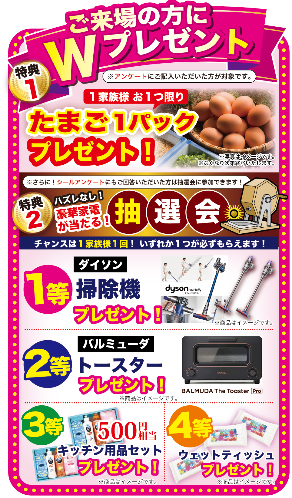 ご来場いただいた皆様には特別プレゼントや、豪華景品が当たる抽選会をご用意してお待ちしておりますので、ぜひお気軽にお越しください!
