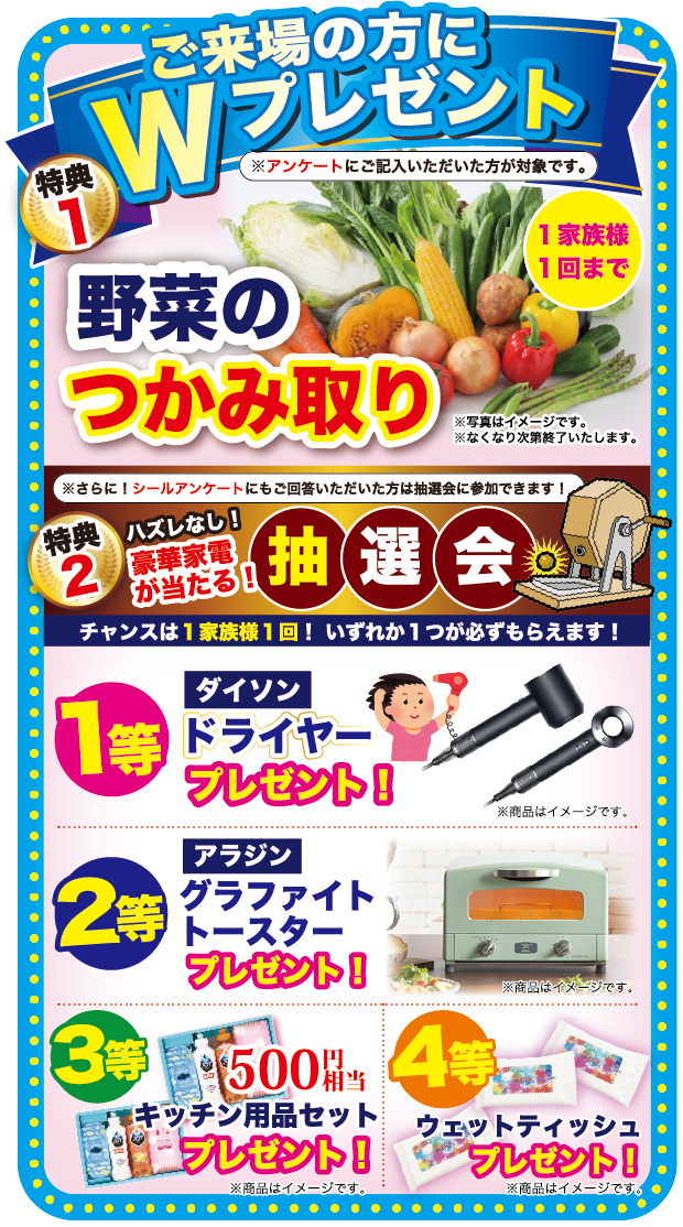 ご来場いただいた皆様には特別プレゼントや、豪華景品が当たる抽選会をご用意してお待ちしておりますので、ぜひお気軽にお越しください!