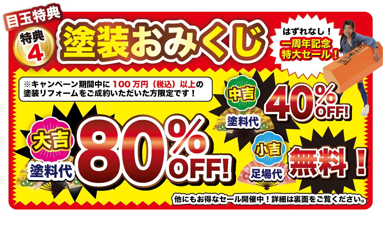イベント期間中にご来場後、100万円(税込)以上の塗装リフォームをご成約いただいた方限定