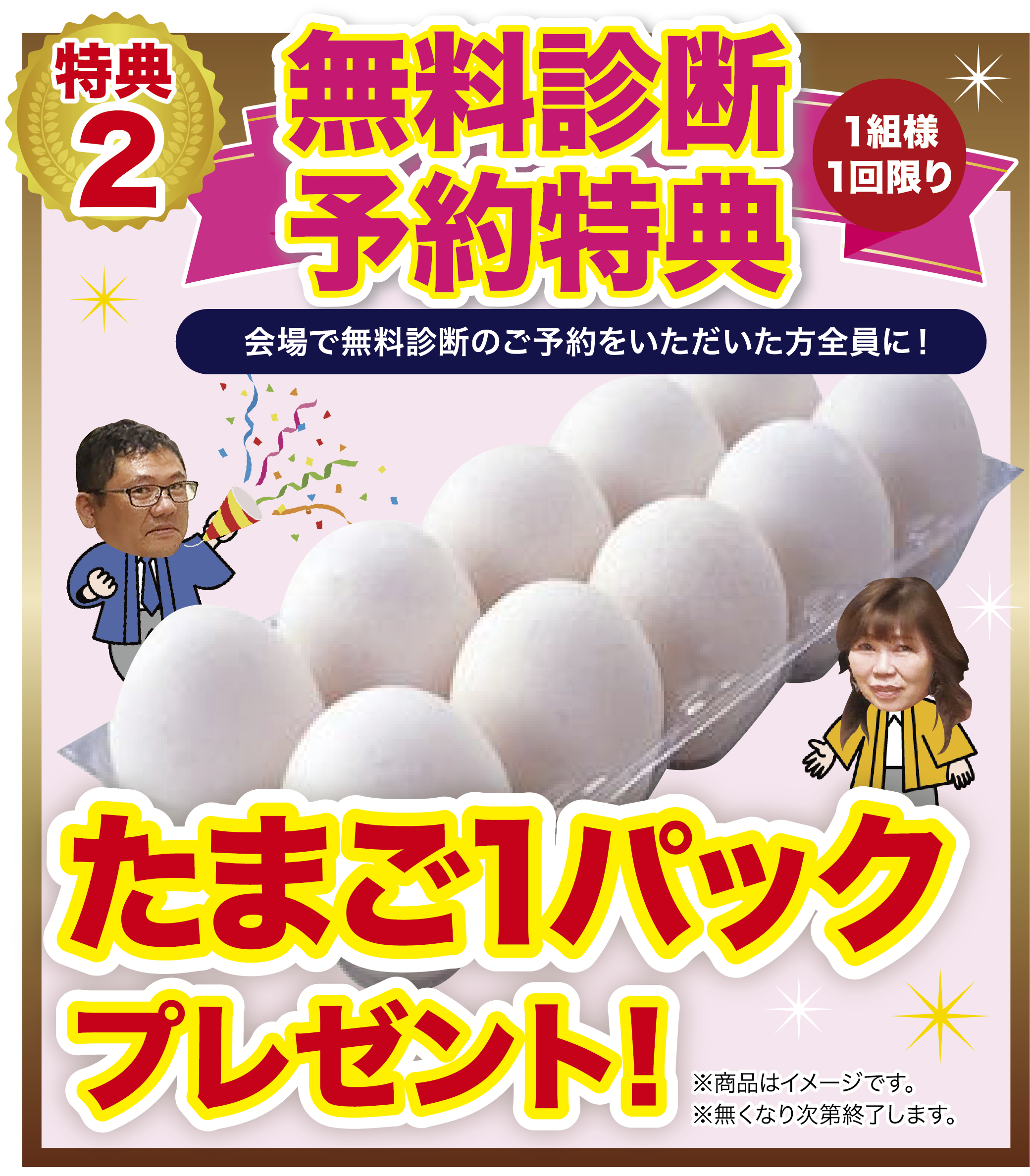 会場で無料診断のご予約をいただいた方全員に