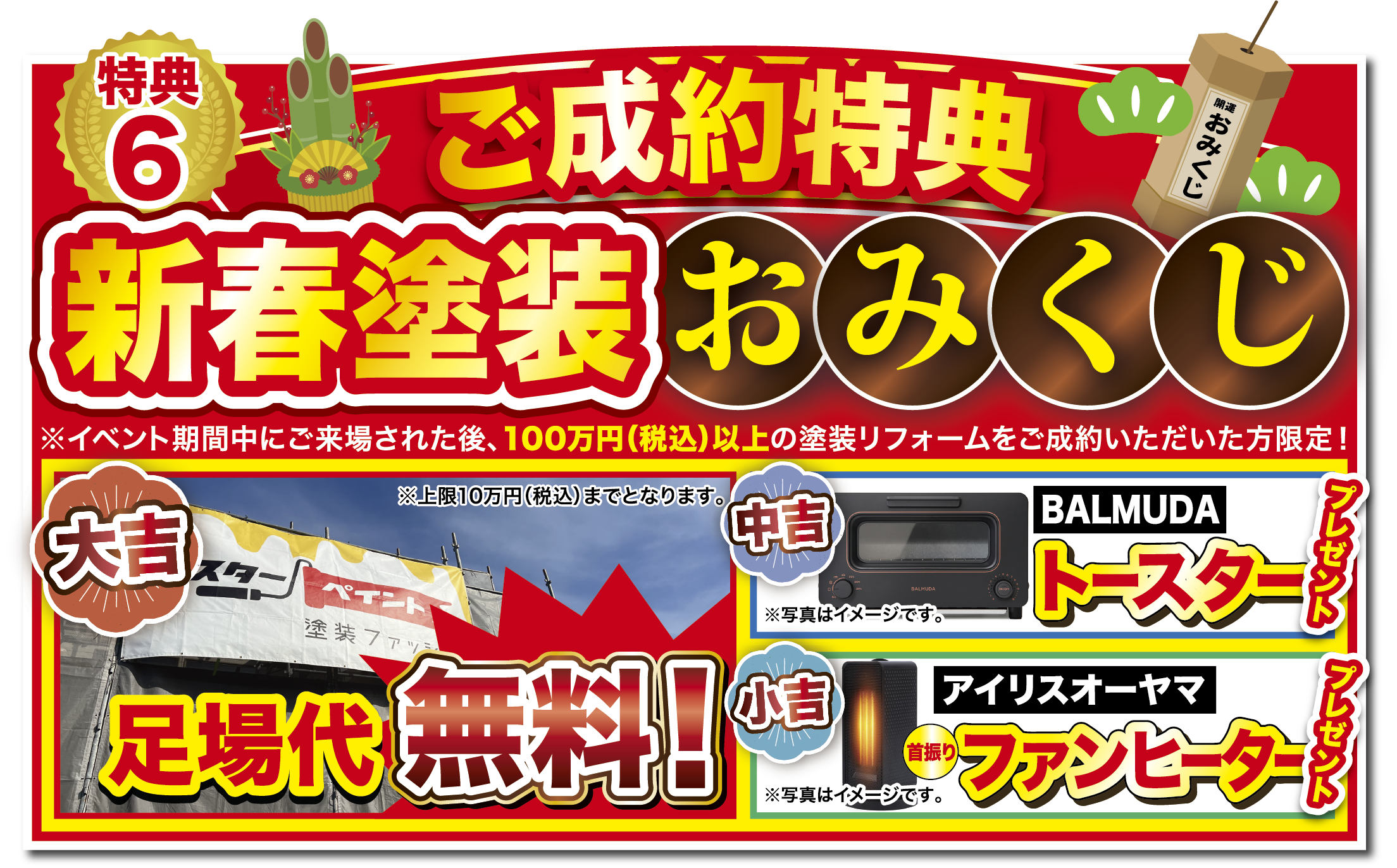 イベント期間中にご来場後、100万円(税込)以上の塗装リフォームをご成約いただいた方限定