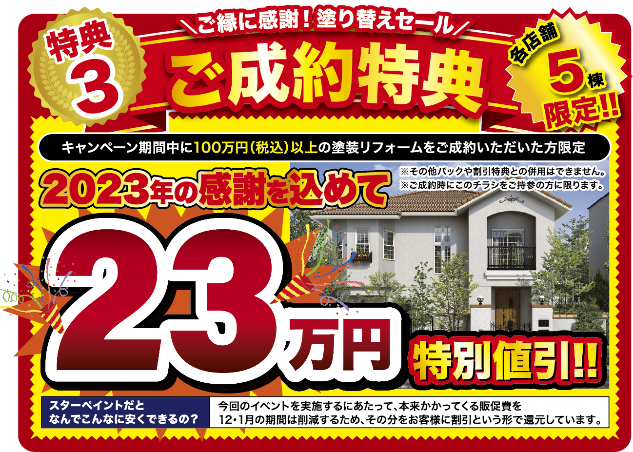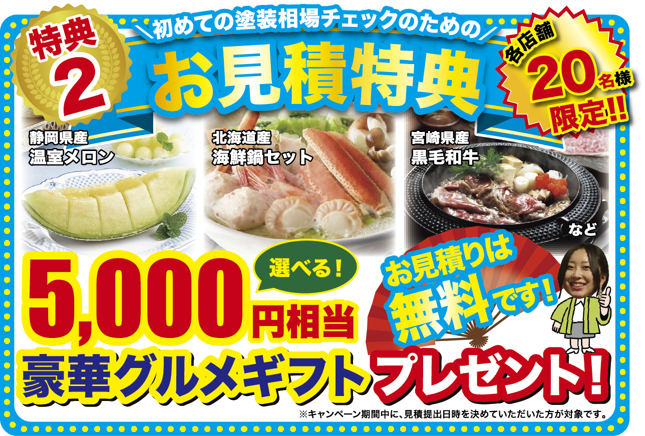 キャンペーン期間中にご相談後、100万円(税込)以上の塗装リフォームをご成約いただいた方限定で