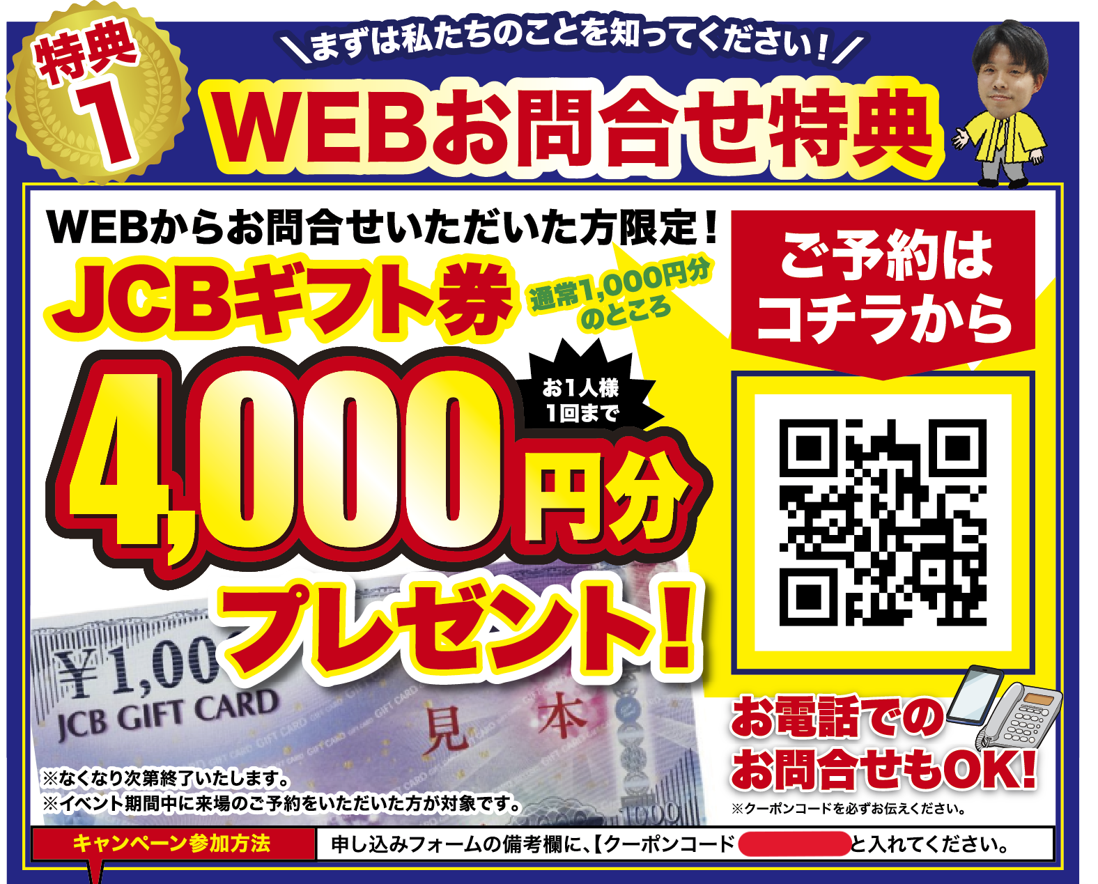 ※「チラシが届いていなかった」または「チラシを紛失してしまった」という方は、その旨備考欄に記載いただくか、お電話にてご連絡いただけると特典をお渡しさせて頂きますので、お気軽にご連絡ください!