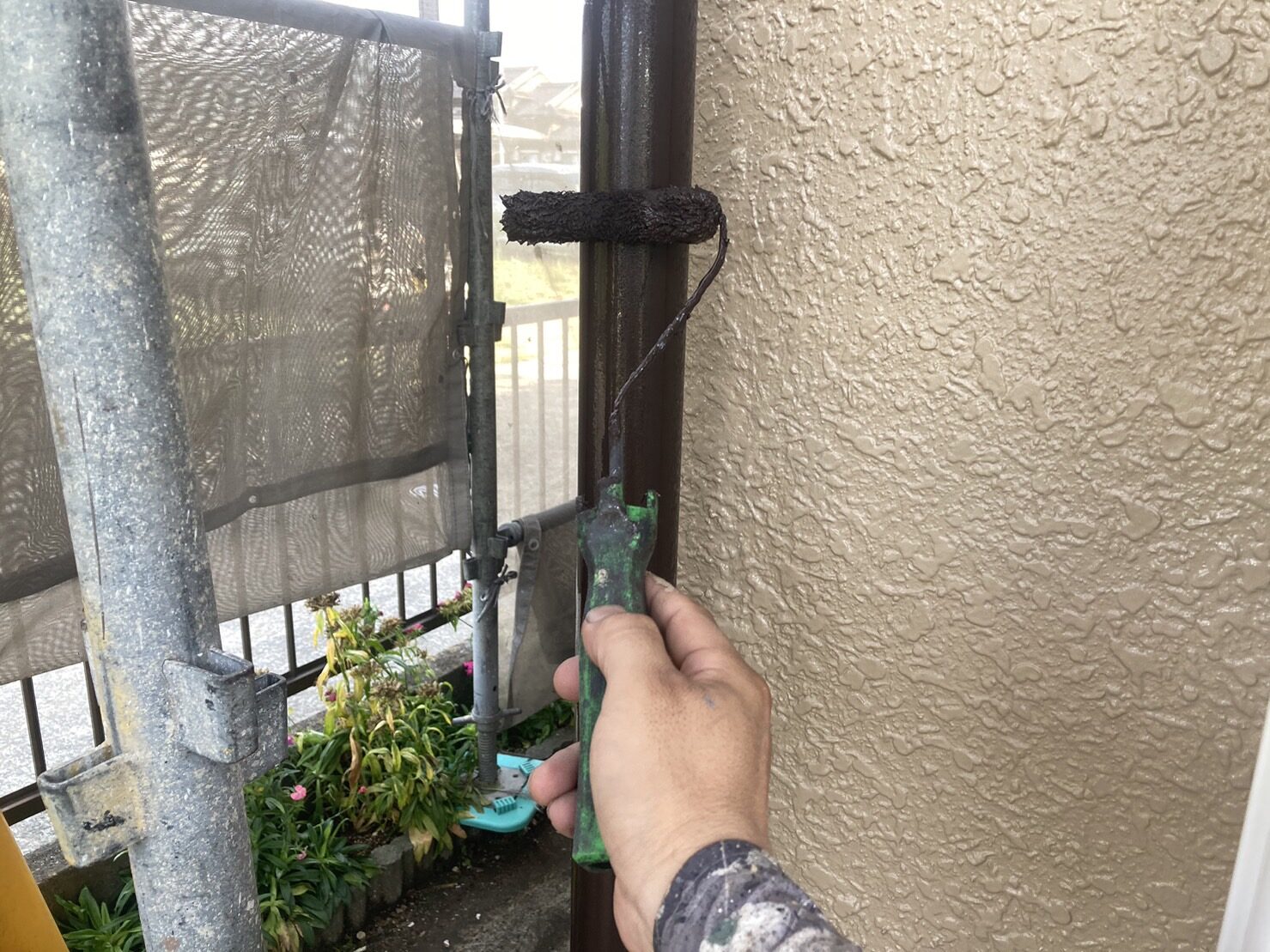こちらのお家のように、付帯部はアクセントで黒ではっきりと目立たせ、逆に隠したいホースカバー等は白で外壁と馴染ませる塗装をさせていただきました。