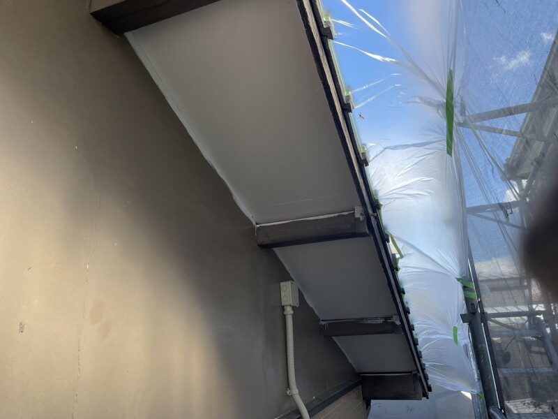 軒天中塗り状況⇩ 軒天上塗り状況⇩