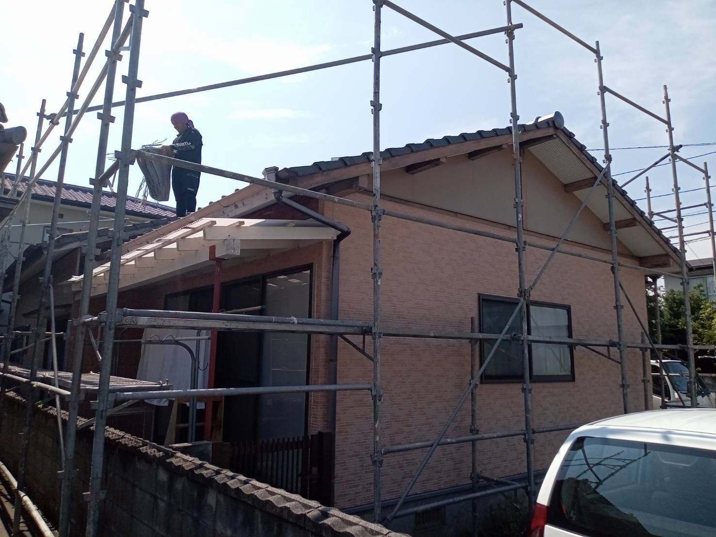 屋根の勾配が大きい場合は、足場を設置する場合もあります。