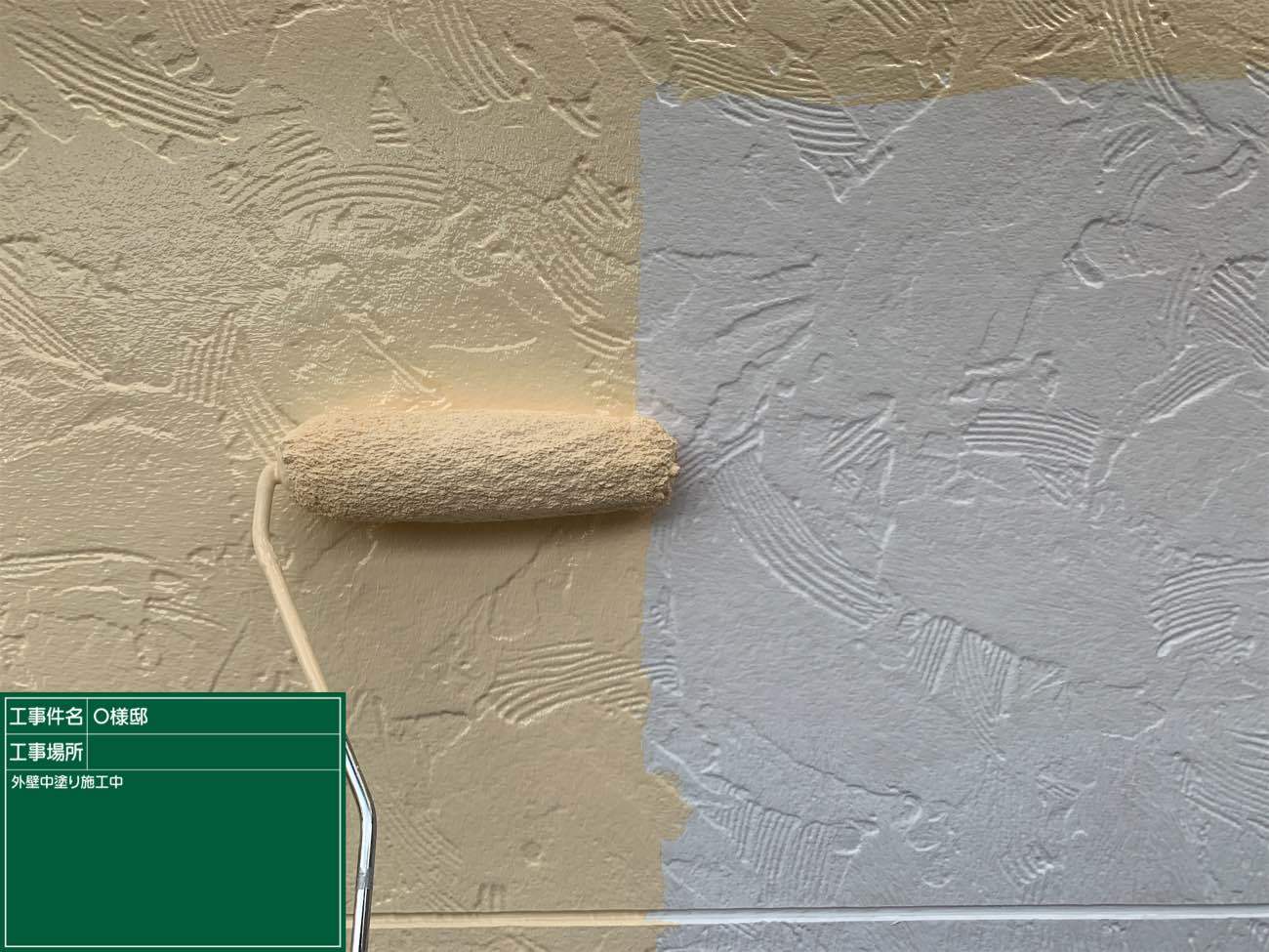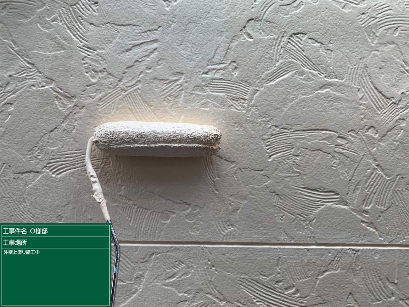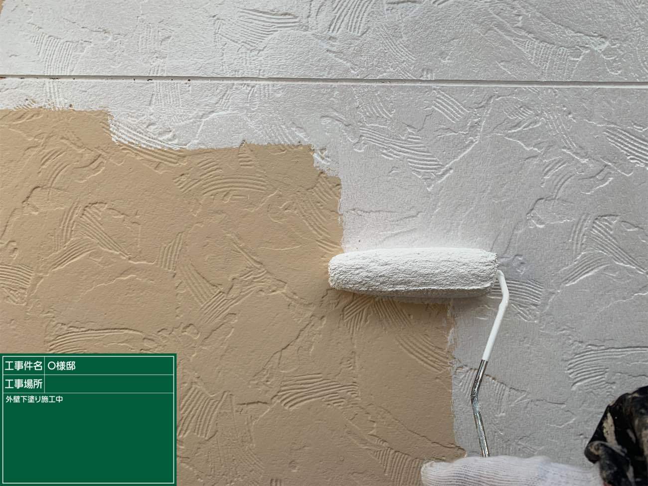 どんな色の外壁でも一度はこのように白くなるので、一層仕上がり絵の期待が膨らみますね!