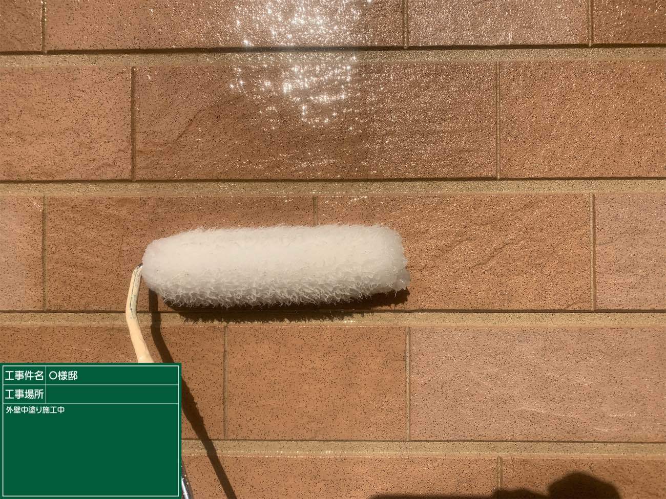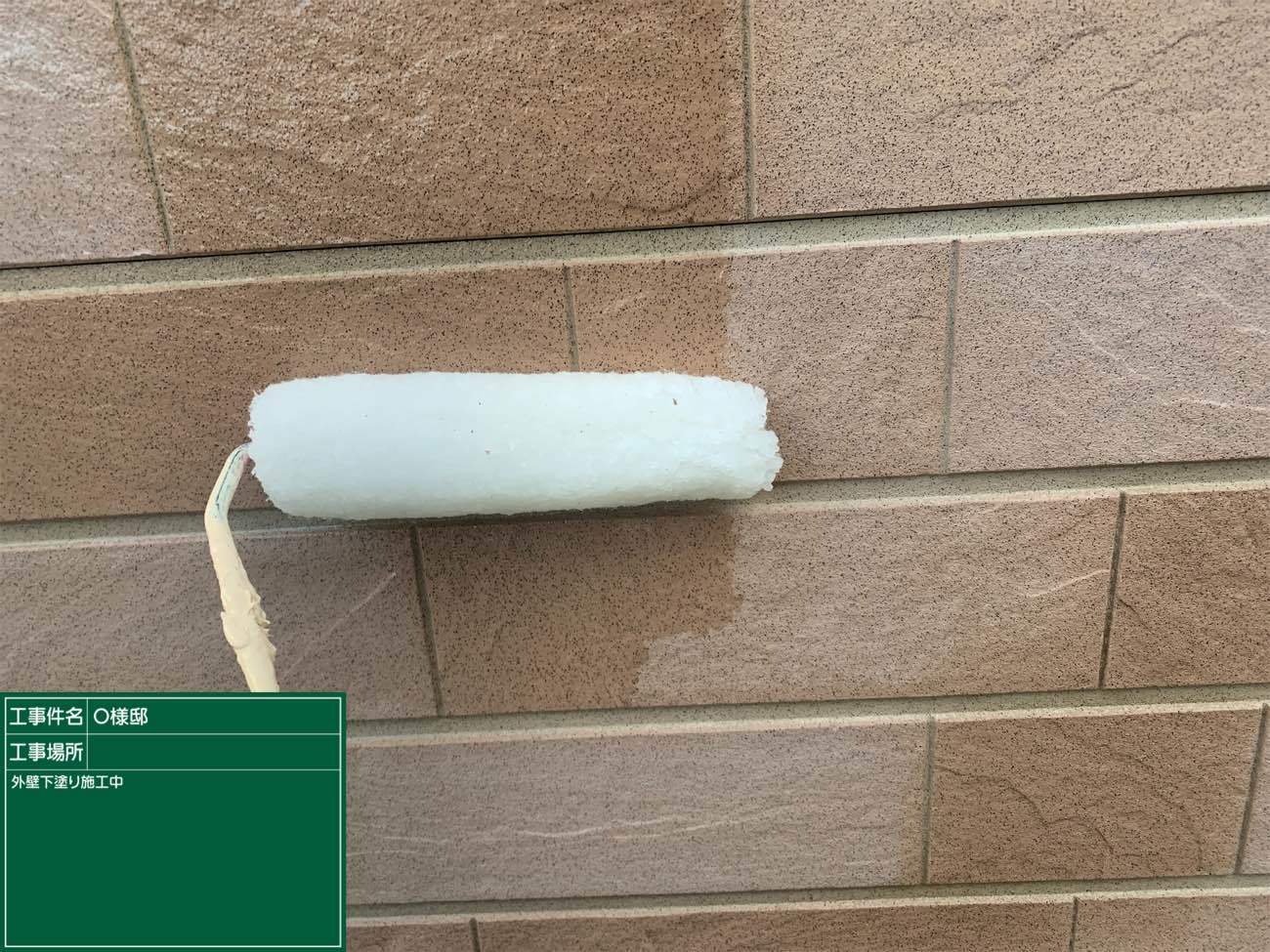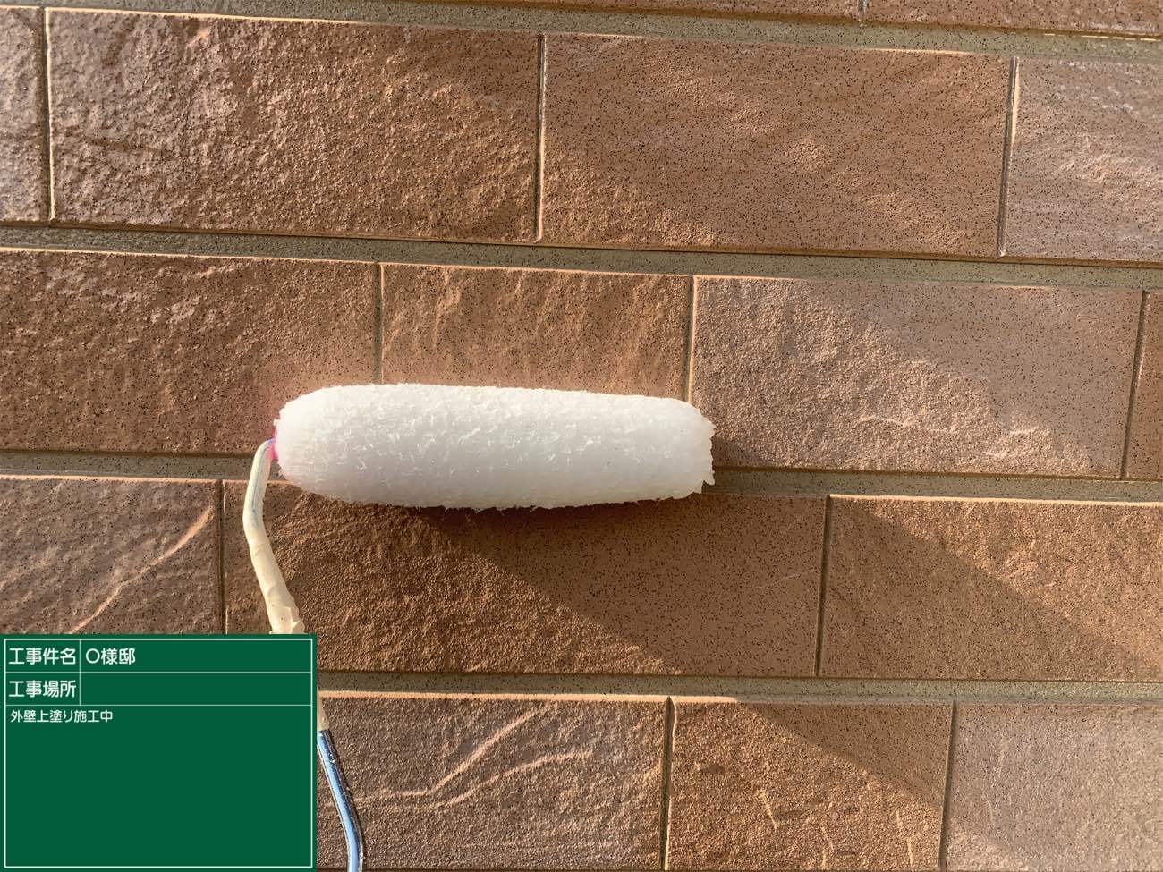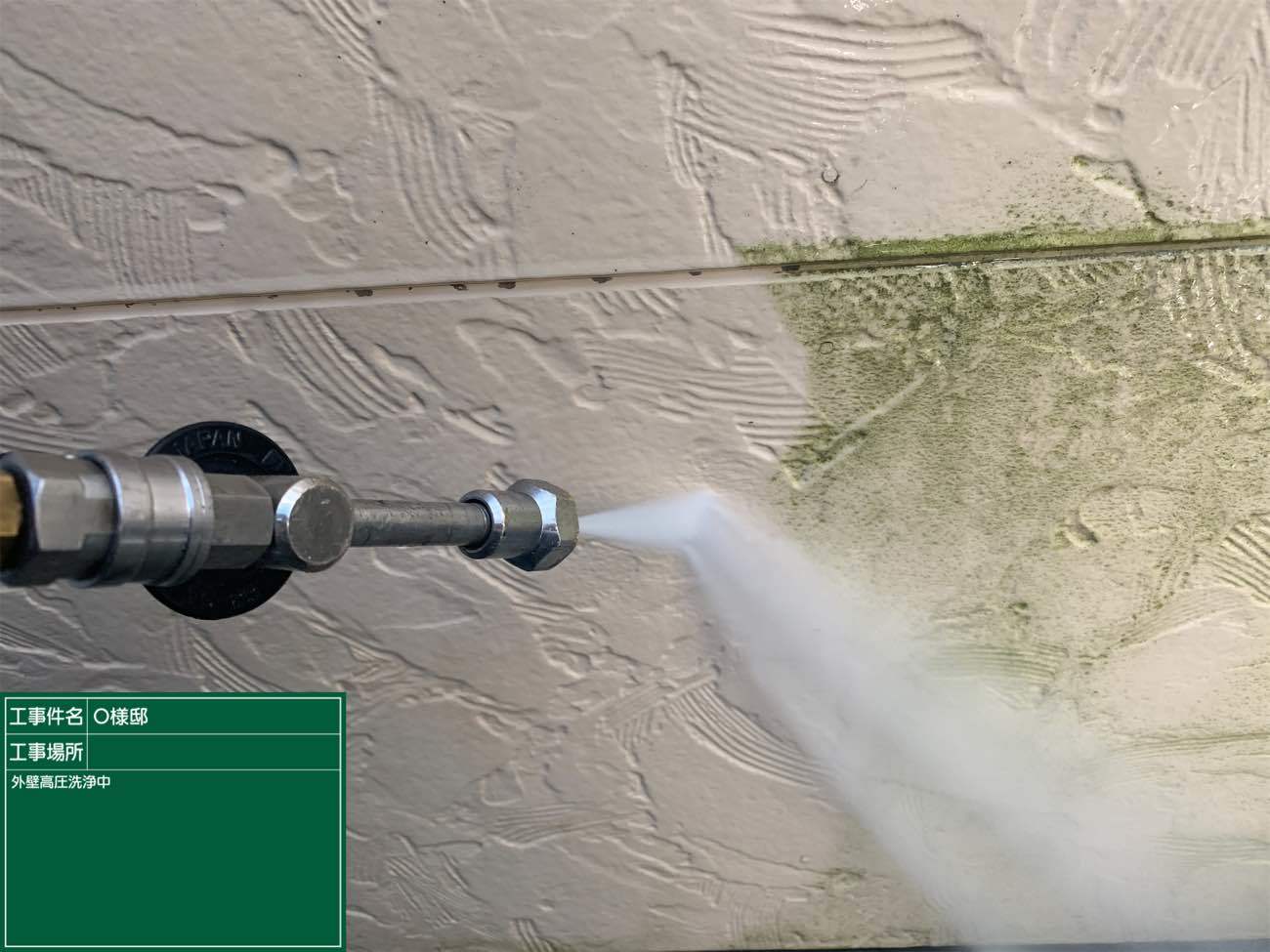 どんな色の外壁でも一度はこのように白くなるので、一層仕上がり絵の期待が膨らみますね!