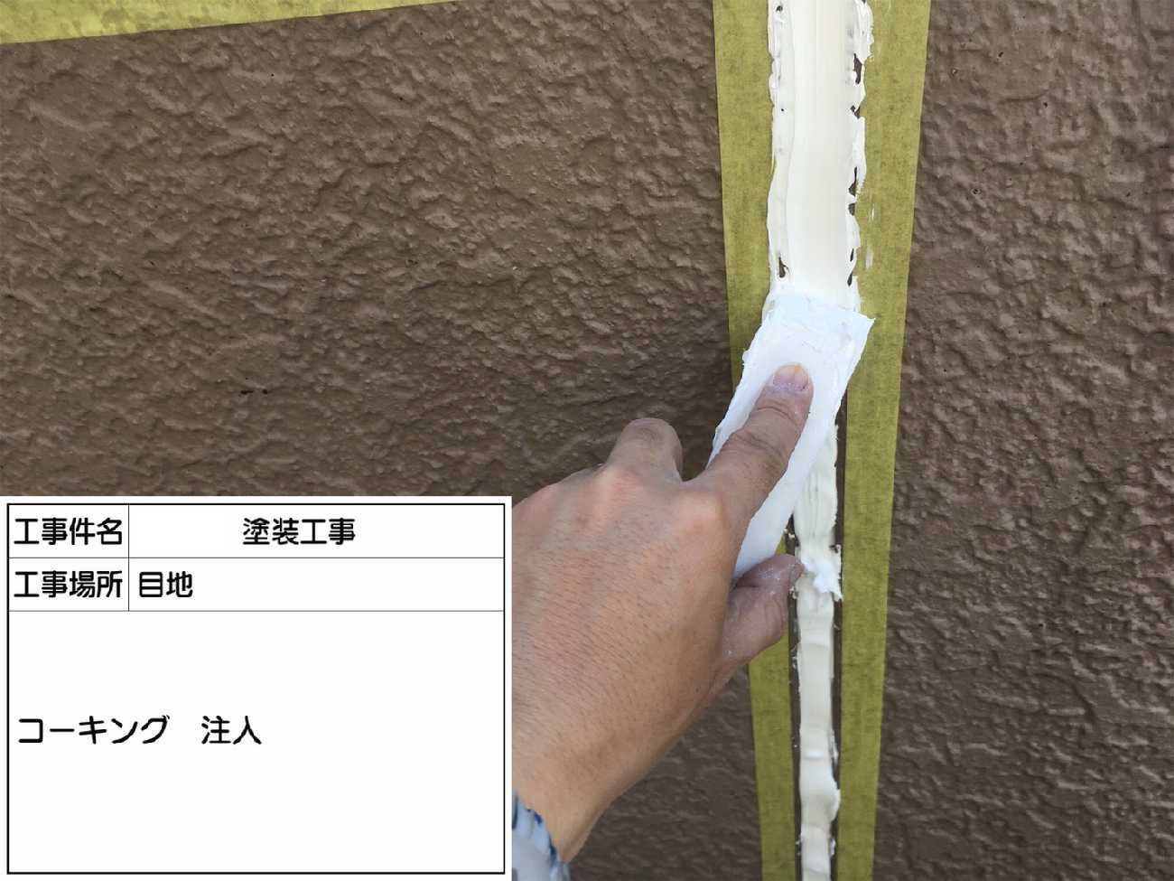 コーキングの充鎮作業の様子です。