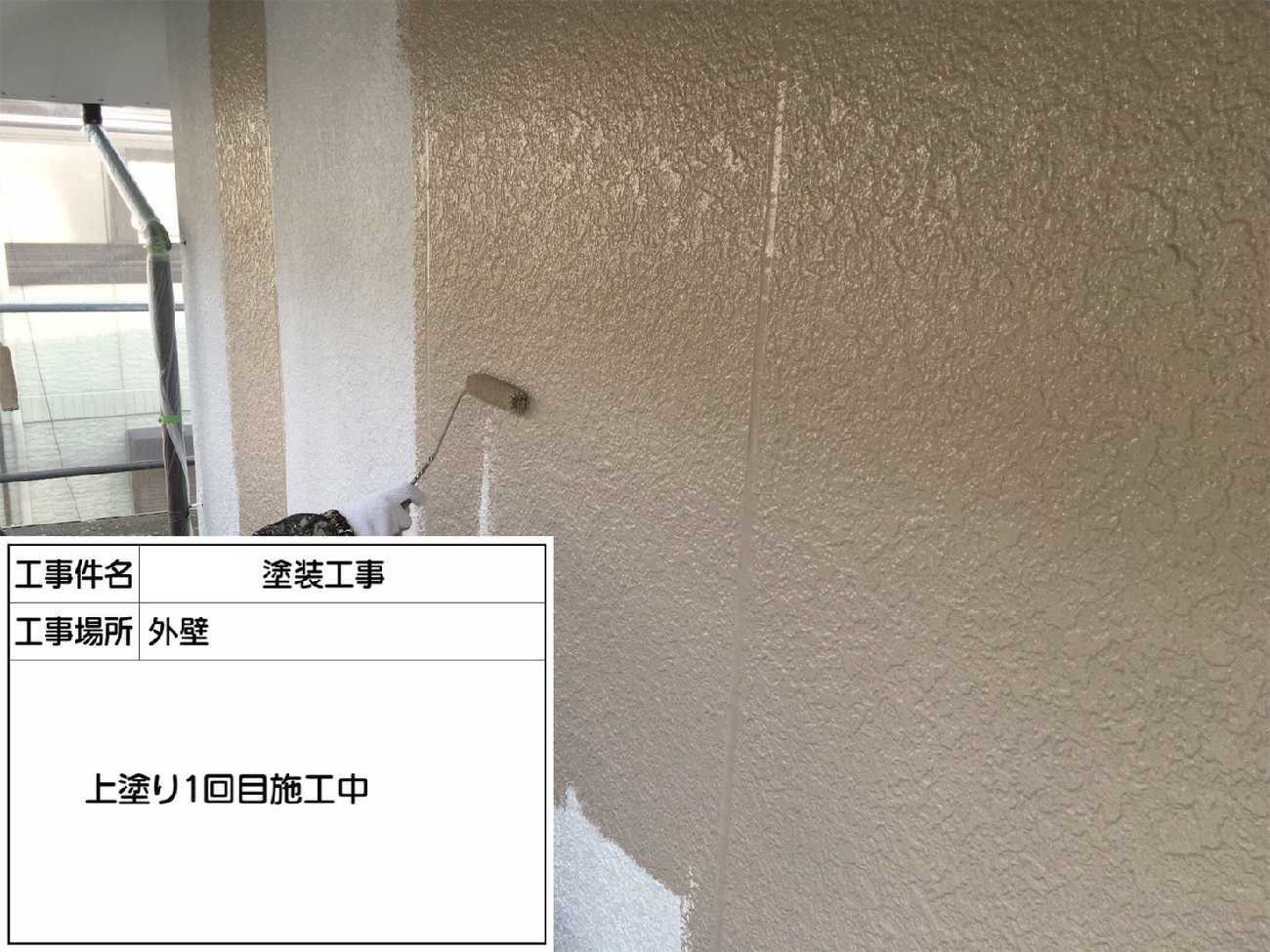 外壁同様、塗膜に厚みをもたせるために中塗りを行います。