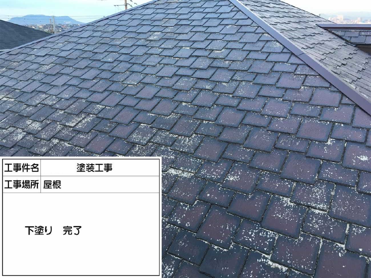 下塗り作業完了です。この工程で手を抜くと塗膜が剥がれる原因となりますので注意が必要です。