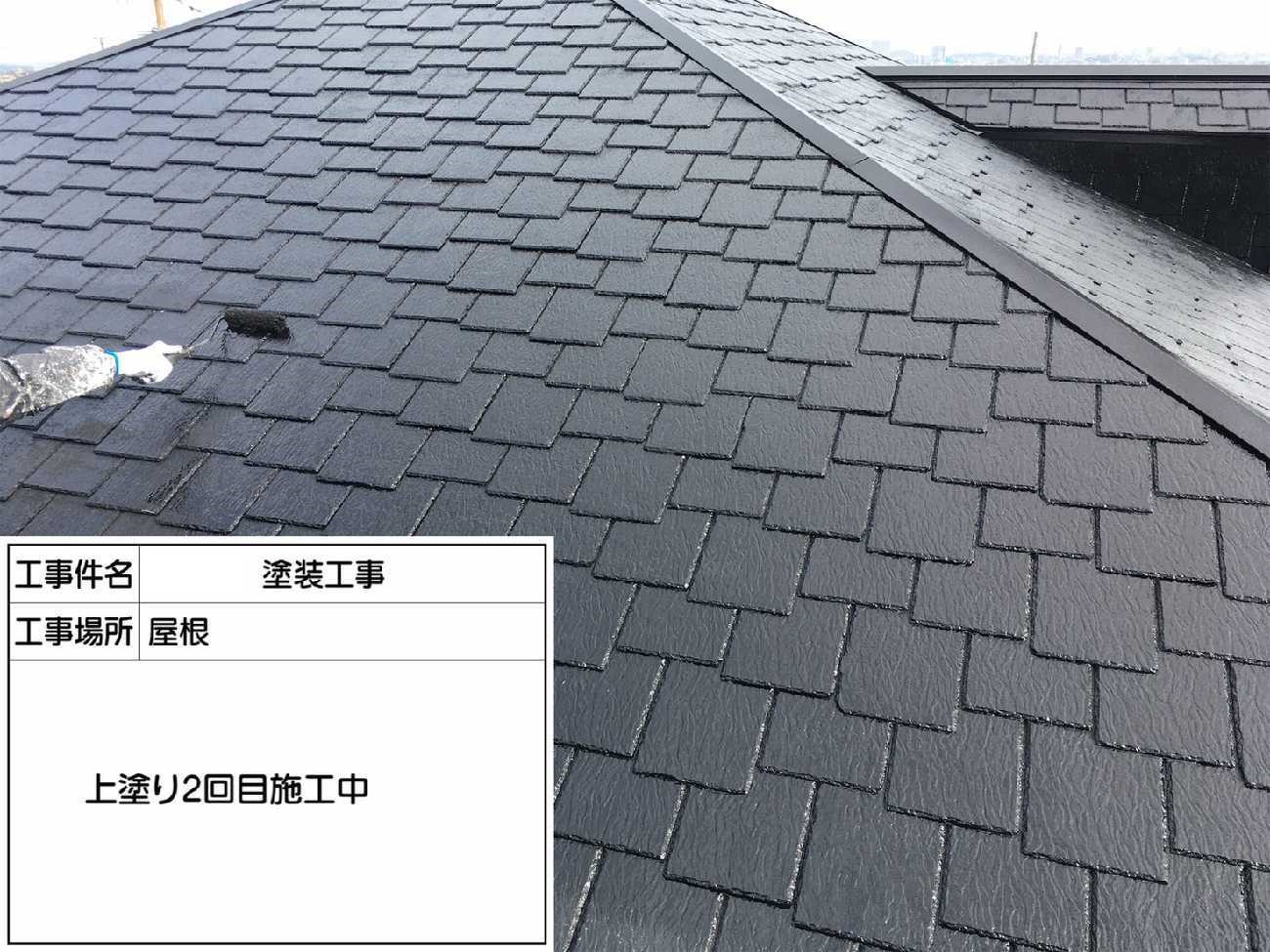 屋根 中塗り作業