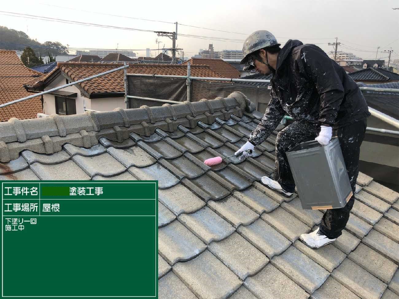 続いては屋根の塗装に行きましょう! 屋根も下塗りを行っていきます。