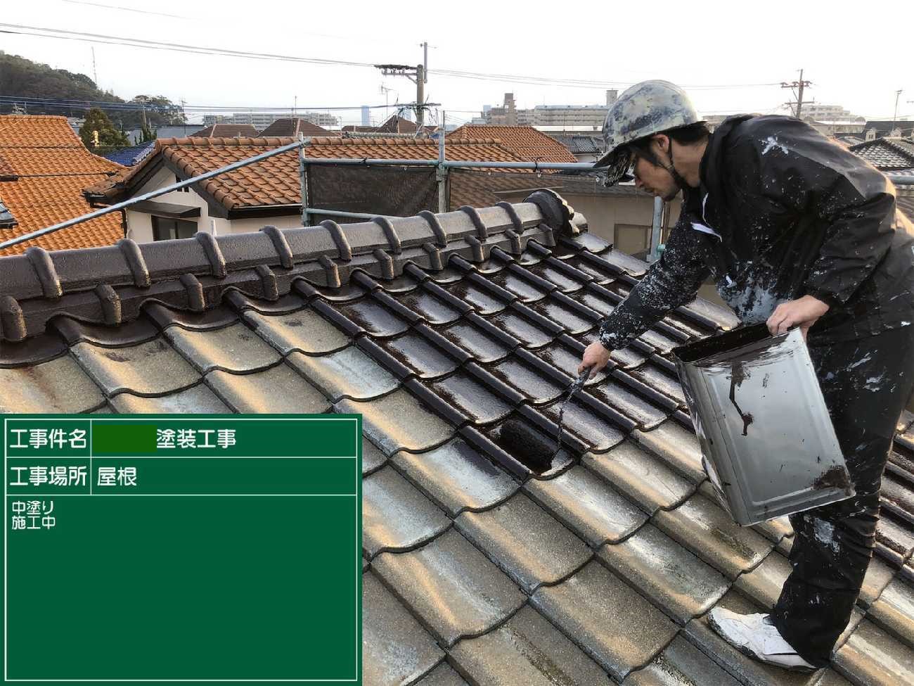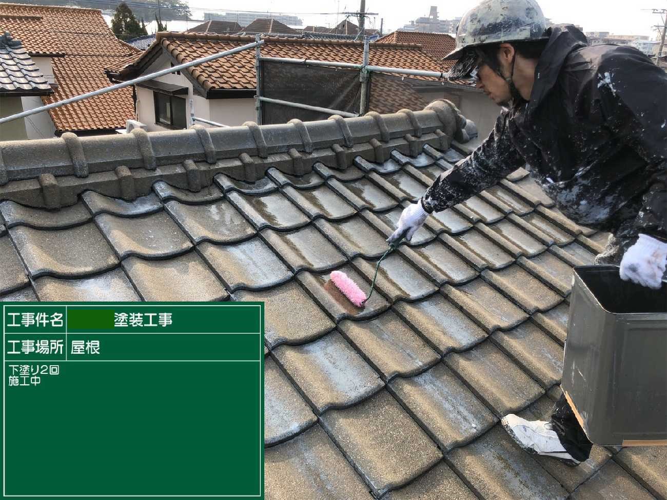 今回屋根の劣化が激しいため、下塗り作業を二回行いました。