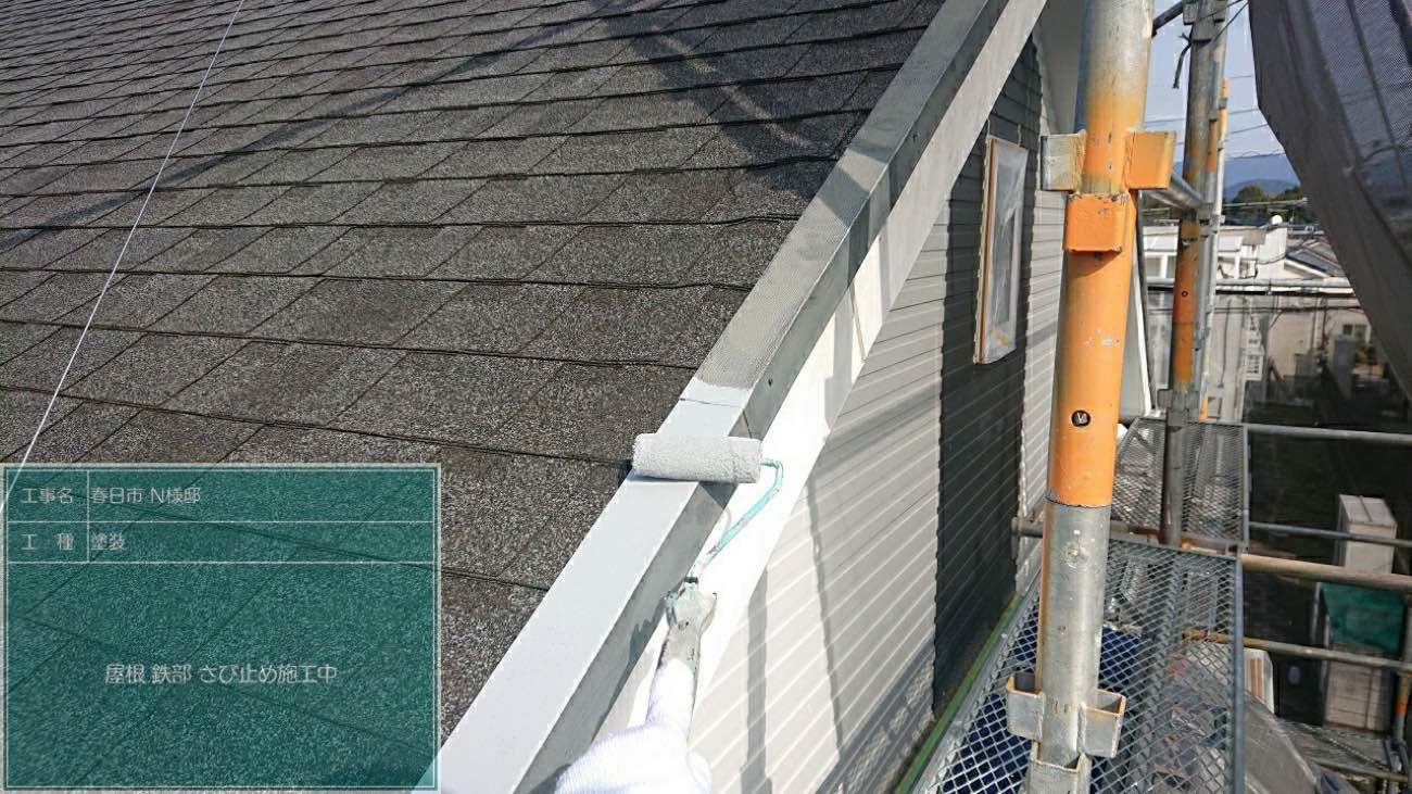 錆止め塗布。鉄部には錆止め塗料を下塗りとして塗布します。