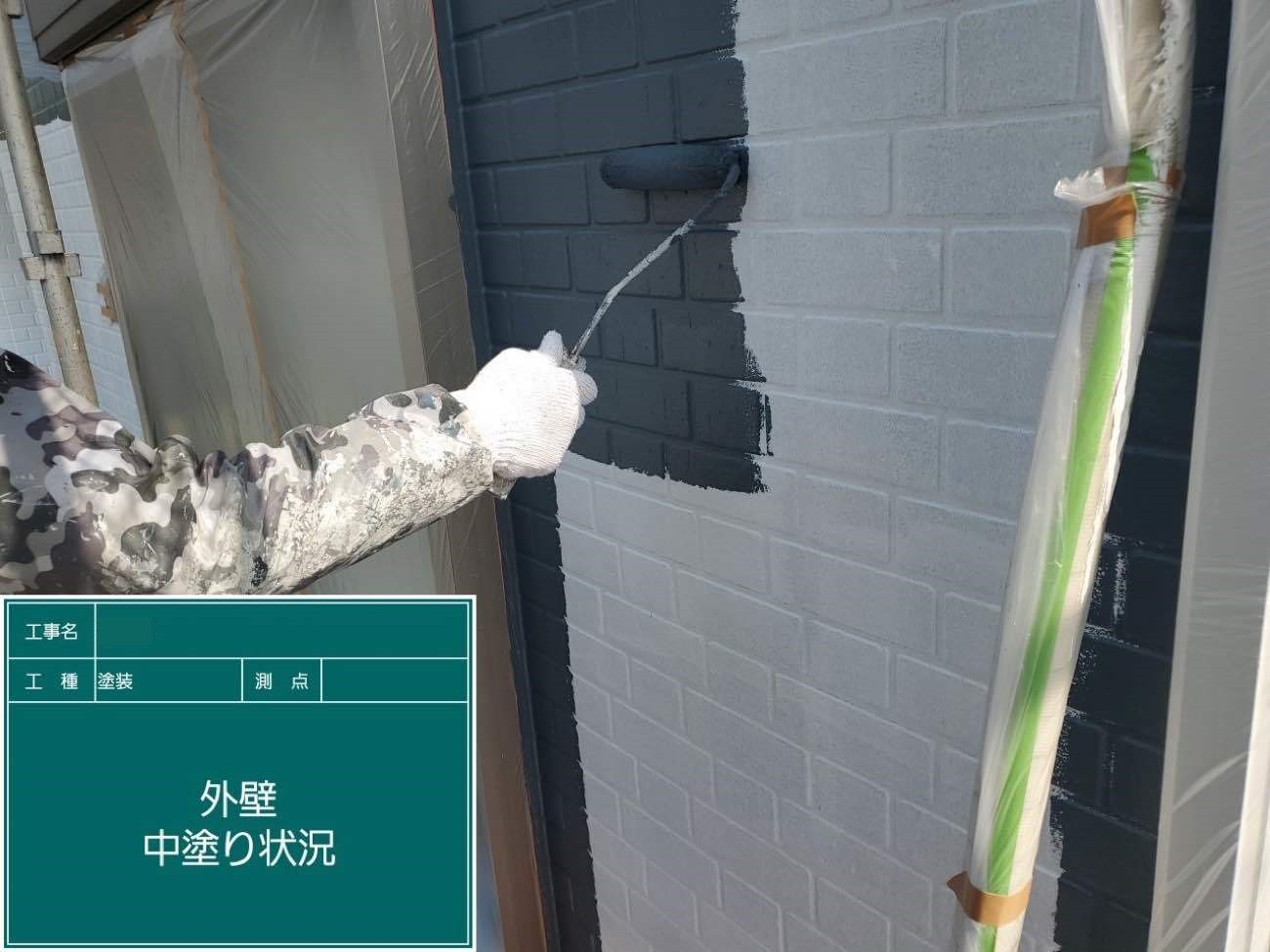 塗装に厚みをだしていきます。外壁も下塗り・中塗り・上塗りと行います。