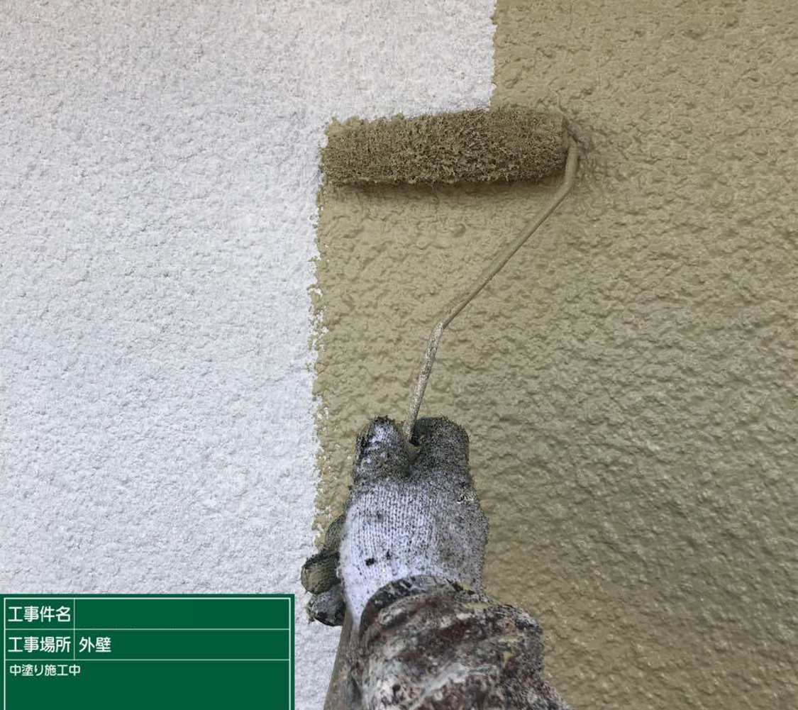 中塗り工程は塗膜の厚みを適切に作るために必要です。工程を分け、都度しっかり乾かすことが工事成功のポイントです。