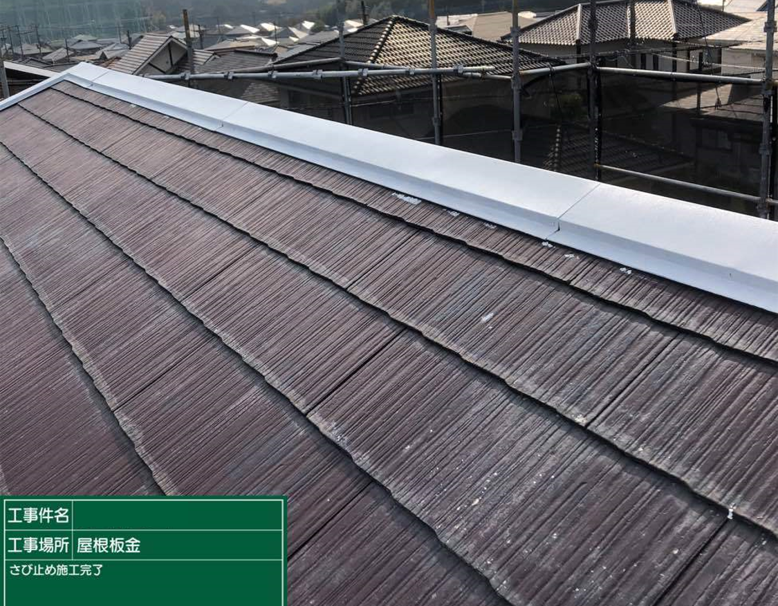 中塗りまで終わるとすっかり屋根の見た目がかわります。