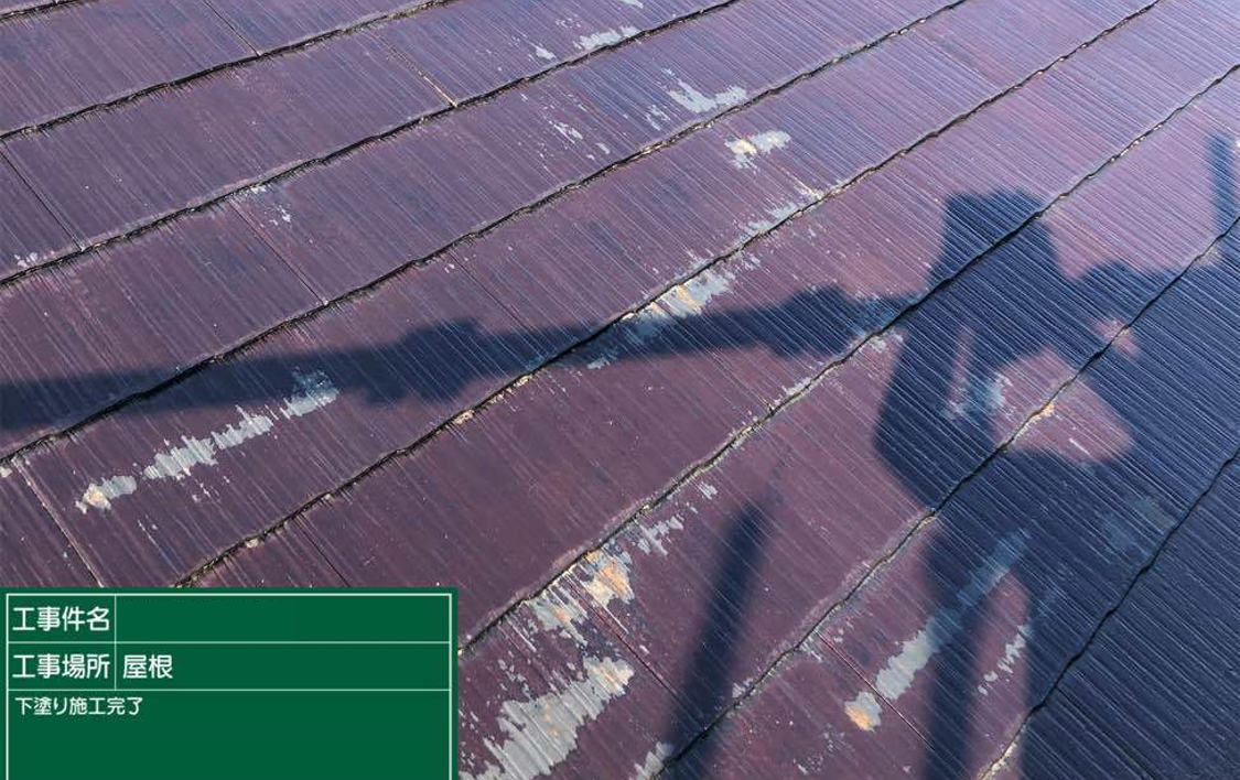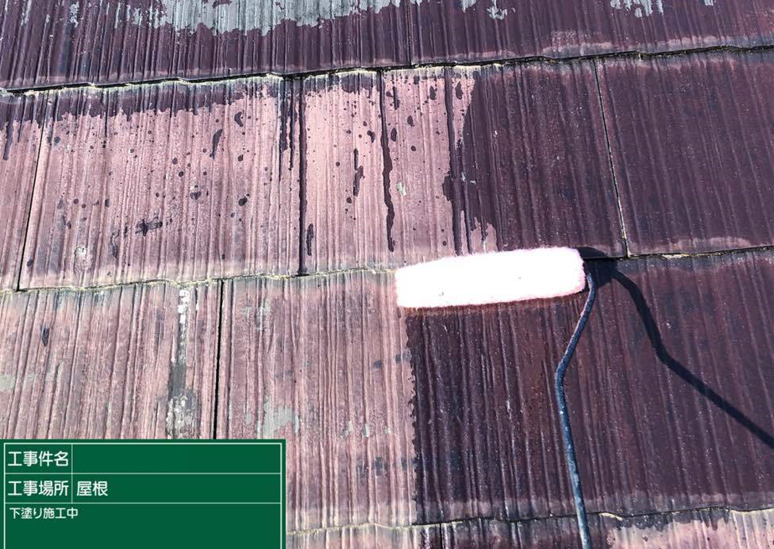 下塗りはこの後に塗る塗料の密着性を高めるために重要な工程です。劣化状況によっては屋根材が塗料を過分に吸い込んでしまい、材料が多く必要な場合もあります。