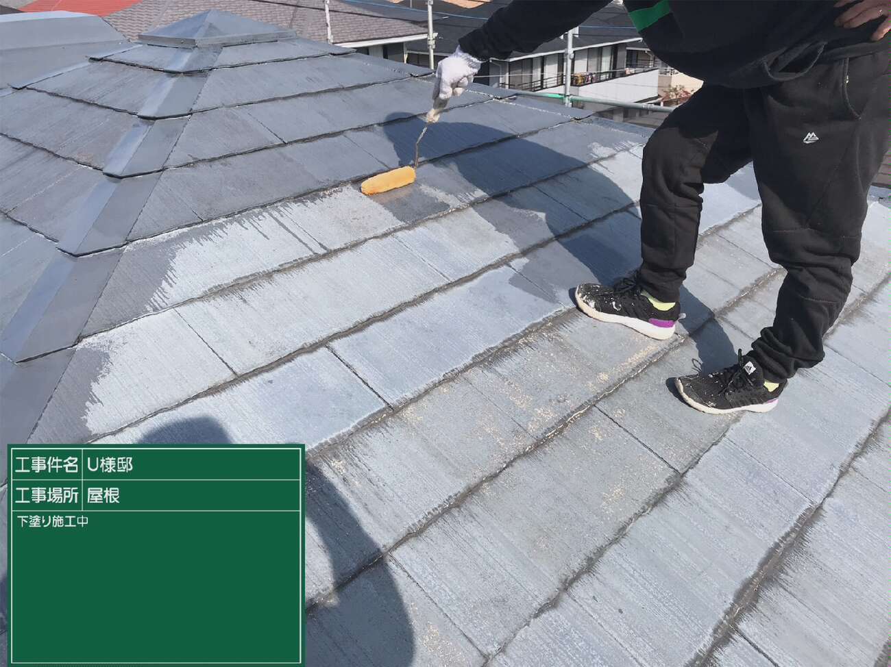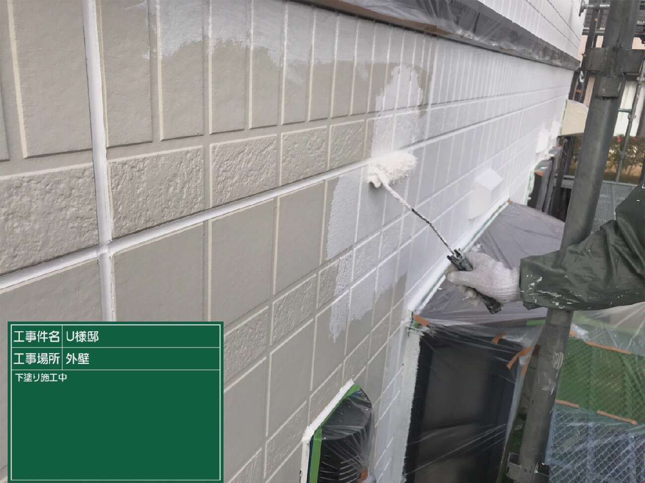 後から塗装が剥がれてこないようにシーラーという下塗り材を塗布していきます。