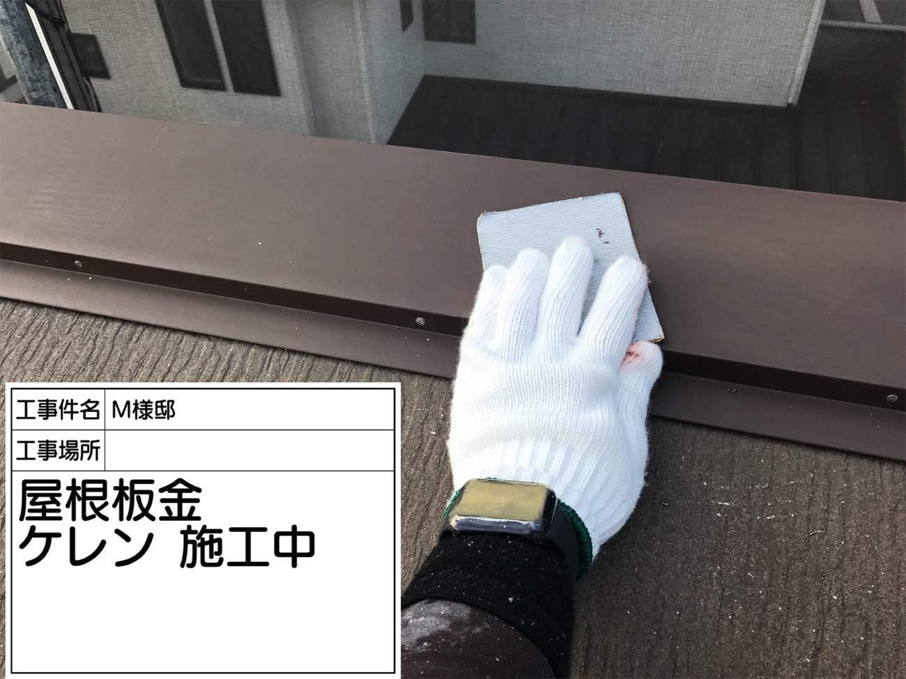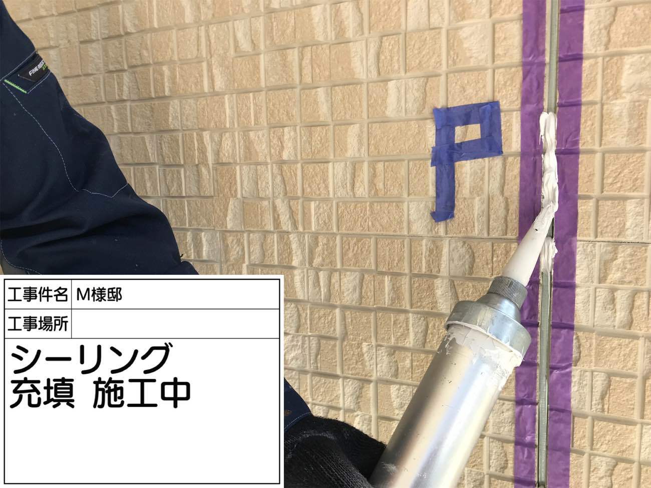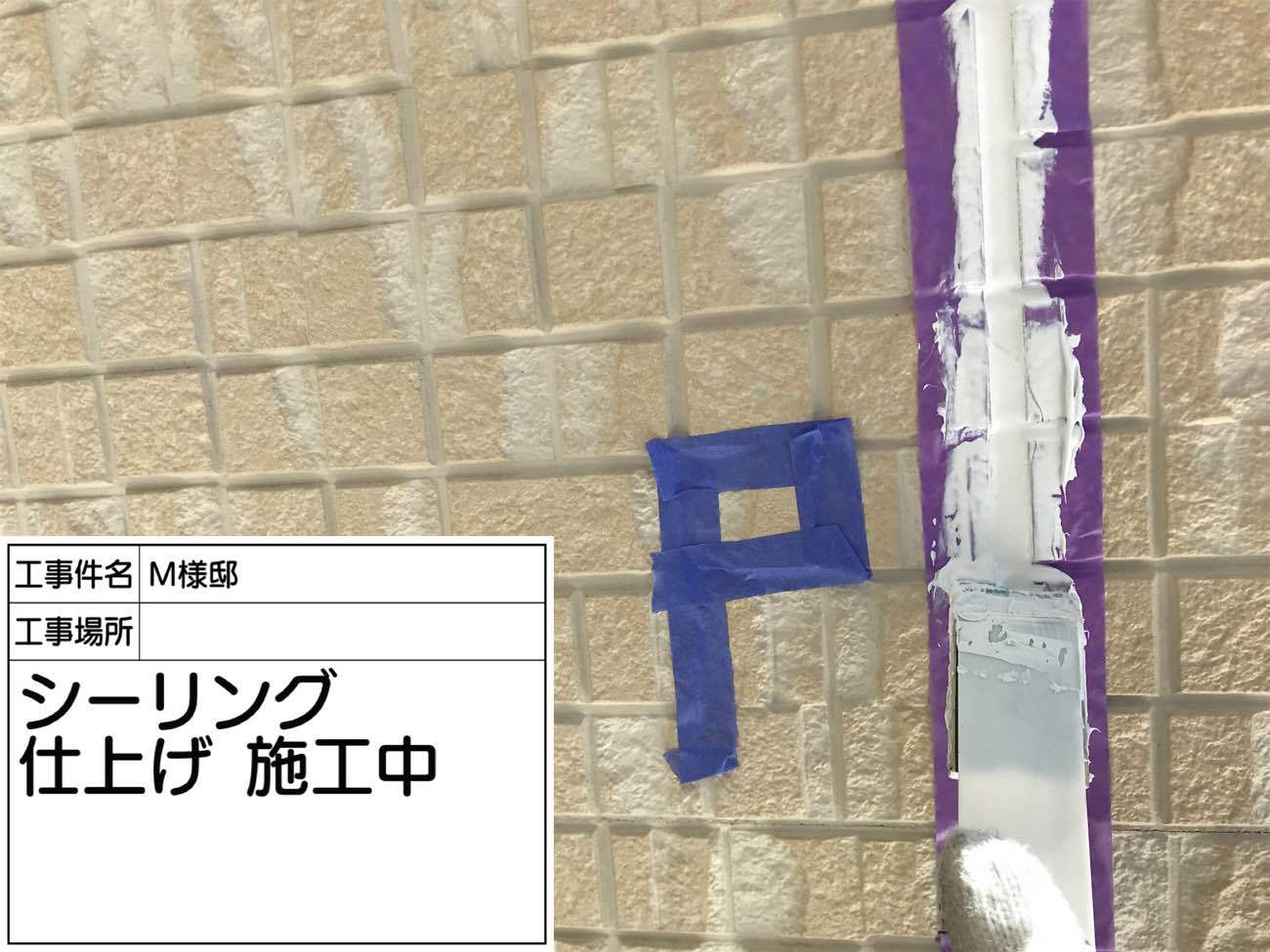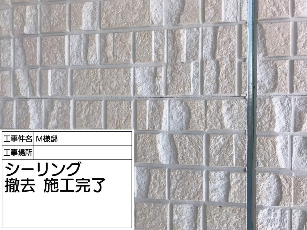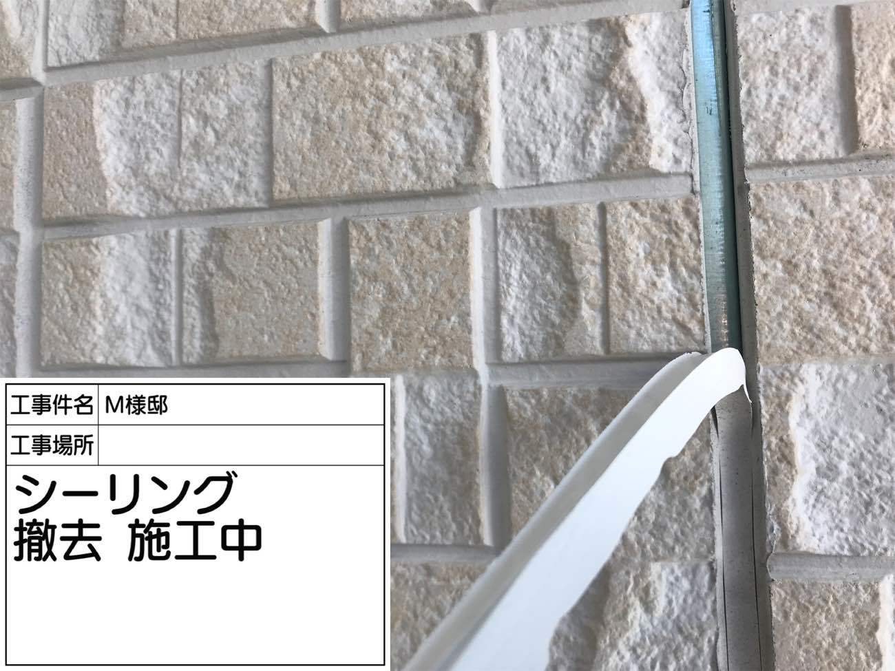シーリングの撤去作業の様子です。古いシーリングを取り除いていきます。