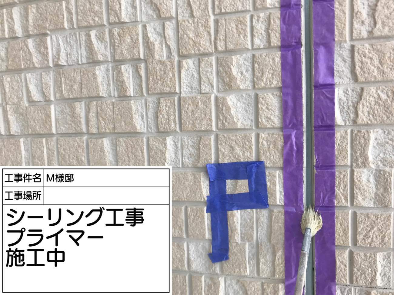 外壁の下塗り作業で中塗り塗料との密着度を高めます。