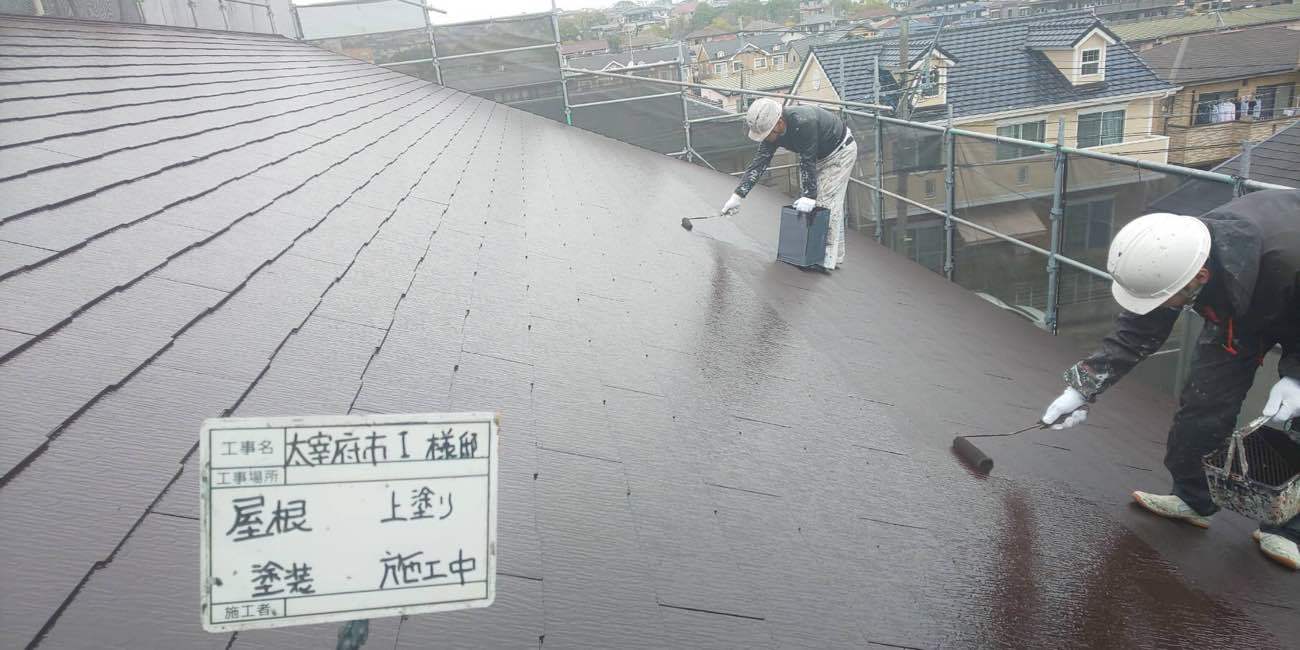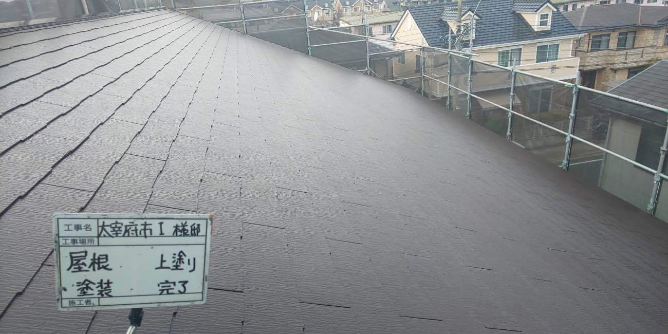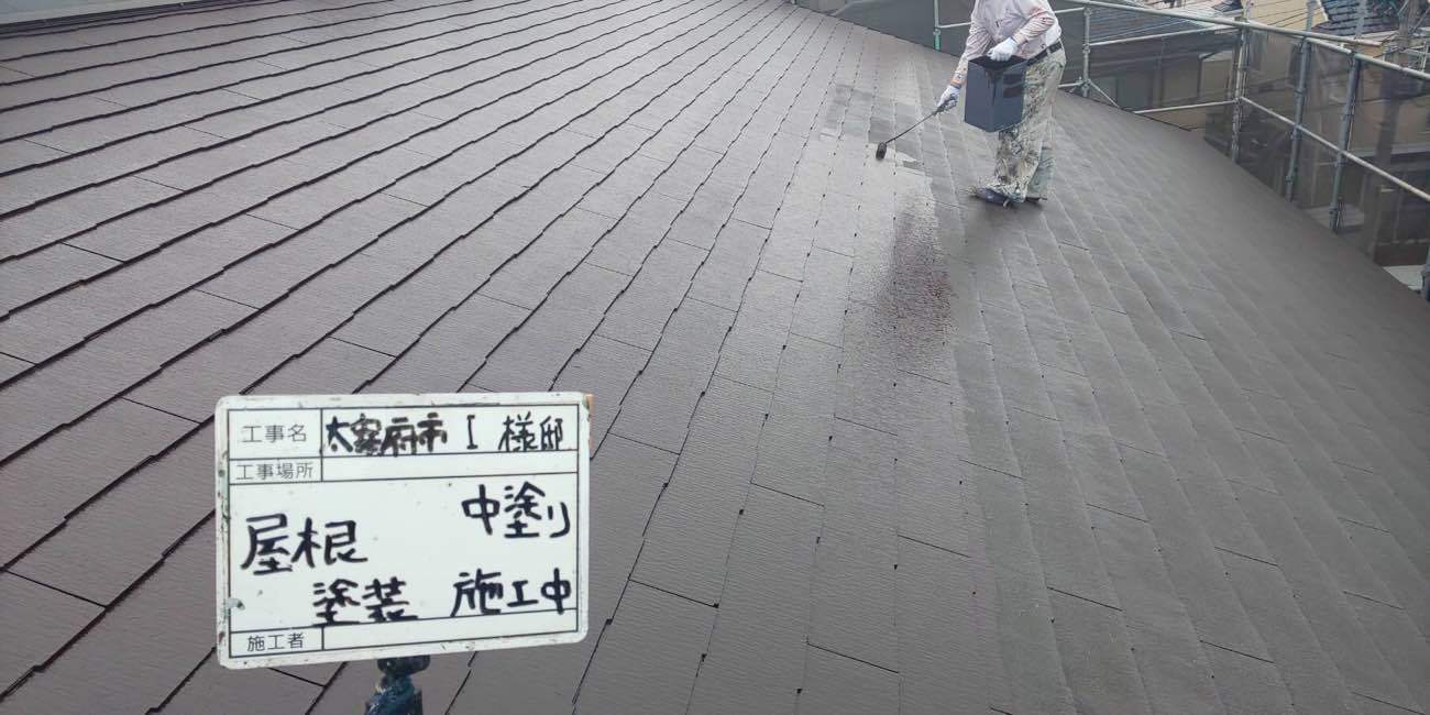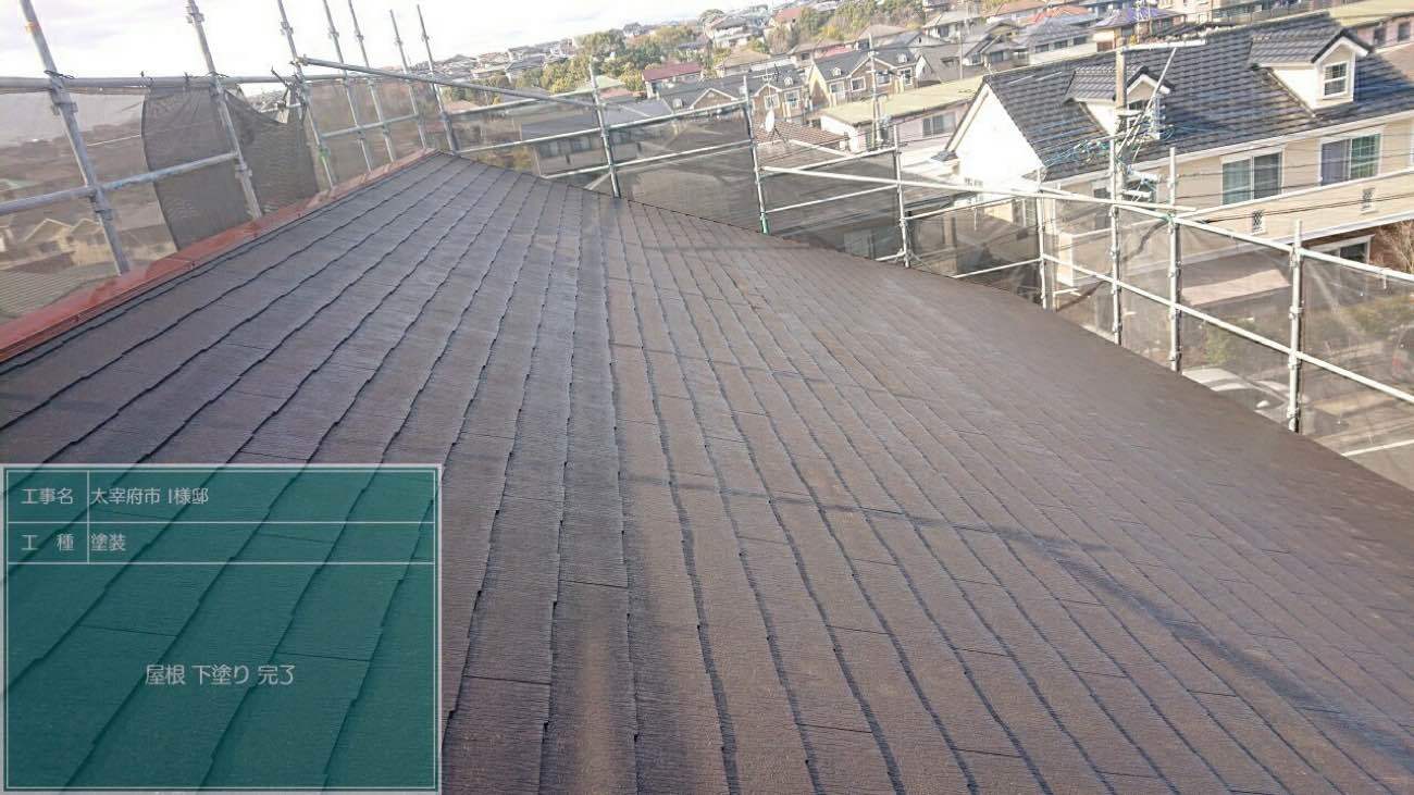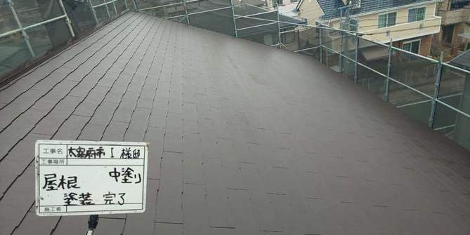 中塗り工程では屋根の仕上がりをイメージすることが出来ます。
