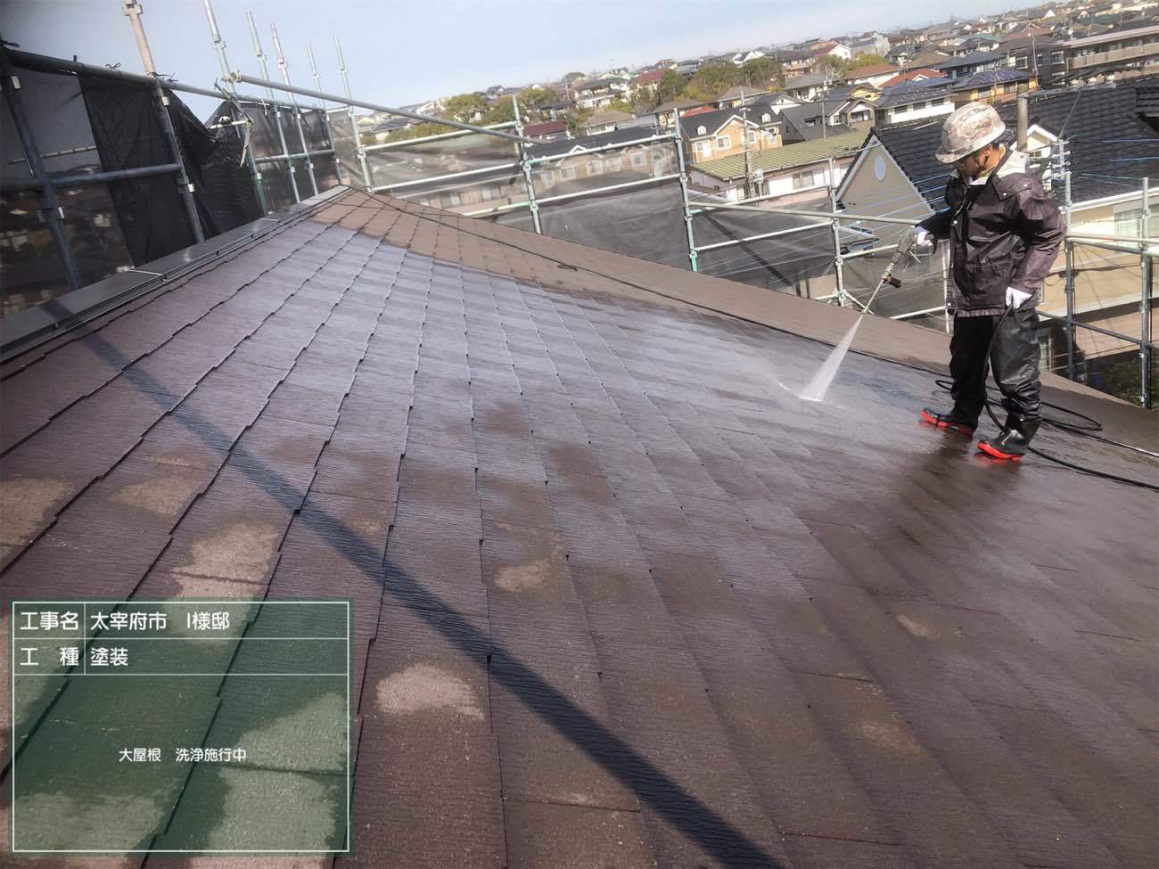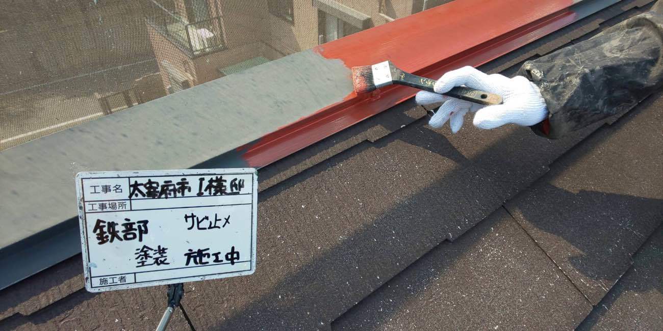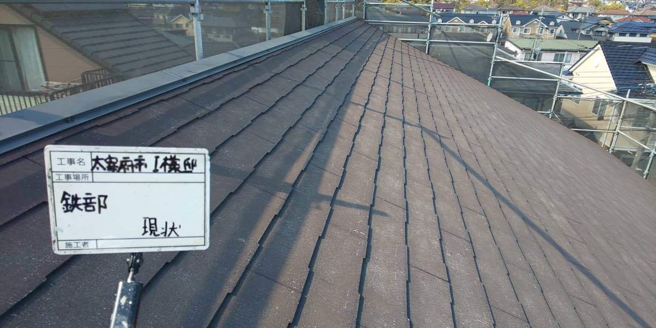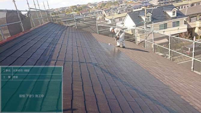 中塗り工程では屋根の仕上がりをイメージすることが出来ます。