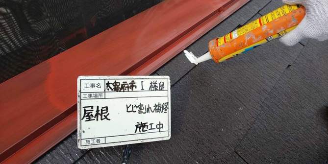 塗装の前には下地補修も行っていきます。ひび割れ部分をシーリング補修。